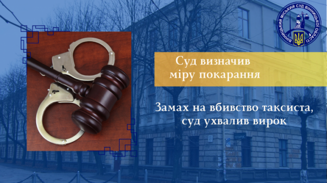 — Реалізовуючи свій злочинний умисел, спрямований на заподіяння смерті водію таксі, перебуваючи на задньому сидінні автомобіля під час руху автомобіля закинув на шию водія попередньо закріплений на обох зап’ястях рук еластичний бинт. Після цього за допомогою зазначеного бинта почав душити останнього, намагаючись спричинити смерть, — зазначають у Вінницькому міському суді Вінницької області.