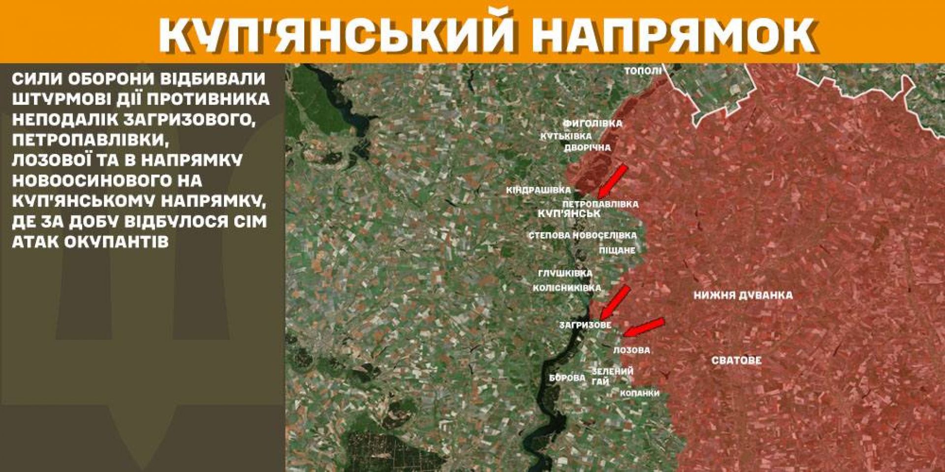 Сили оборони відбивали штурмові дії противника неподалік Загризового, Петропавлівки, Лозової та в напрямку Новоосинового на Куп’янському напрямку, де за добу відбулося сім атак окупантів.