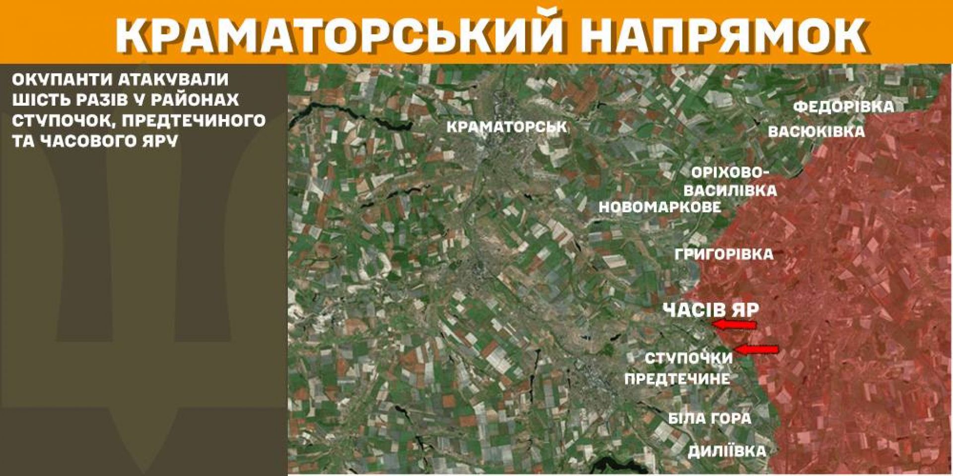 На Краматорському напрямку окупанти атакували шість разів у районах Ступочок, Предтечиного та Часового Яру.