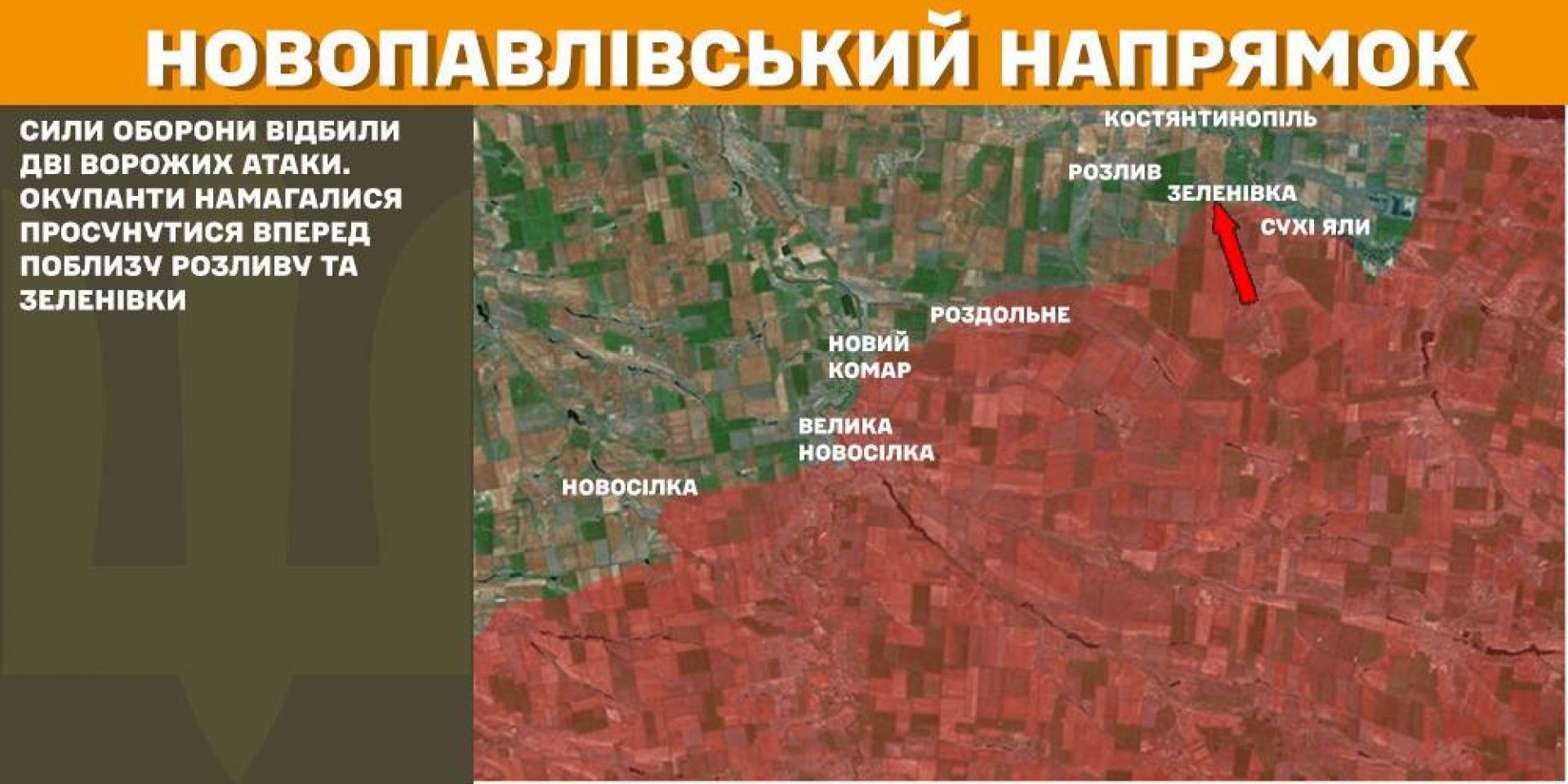 Сили оборони відбили дві ворожих атаки на Новопавлівському напрямку. Окупанти намагалися просунутися вперед поблизу Розливу та Зеленівки.