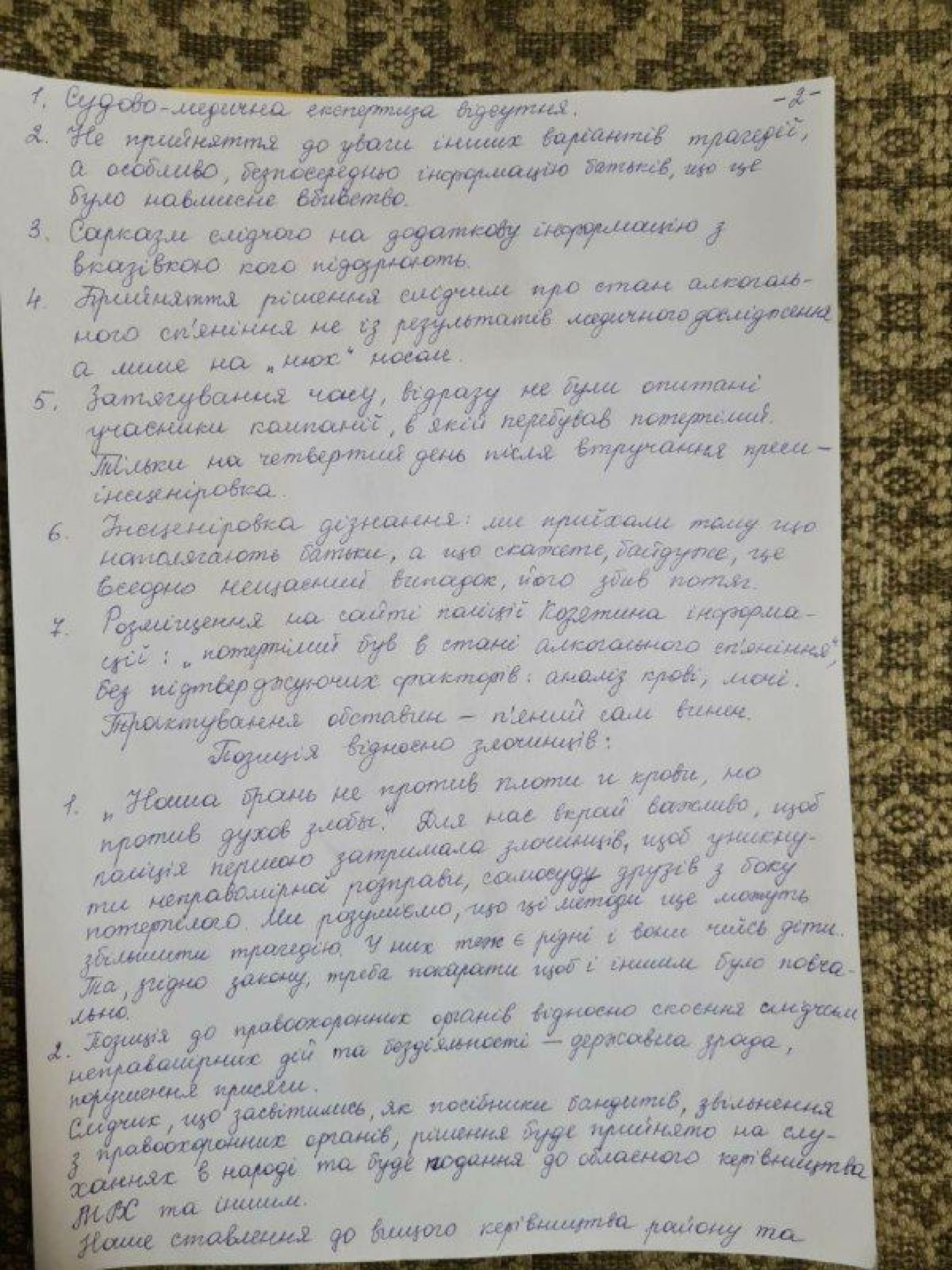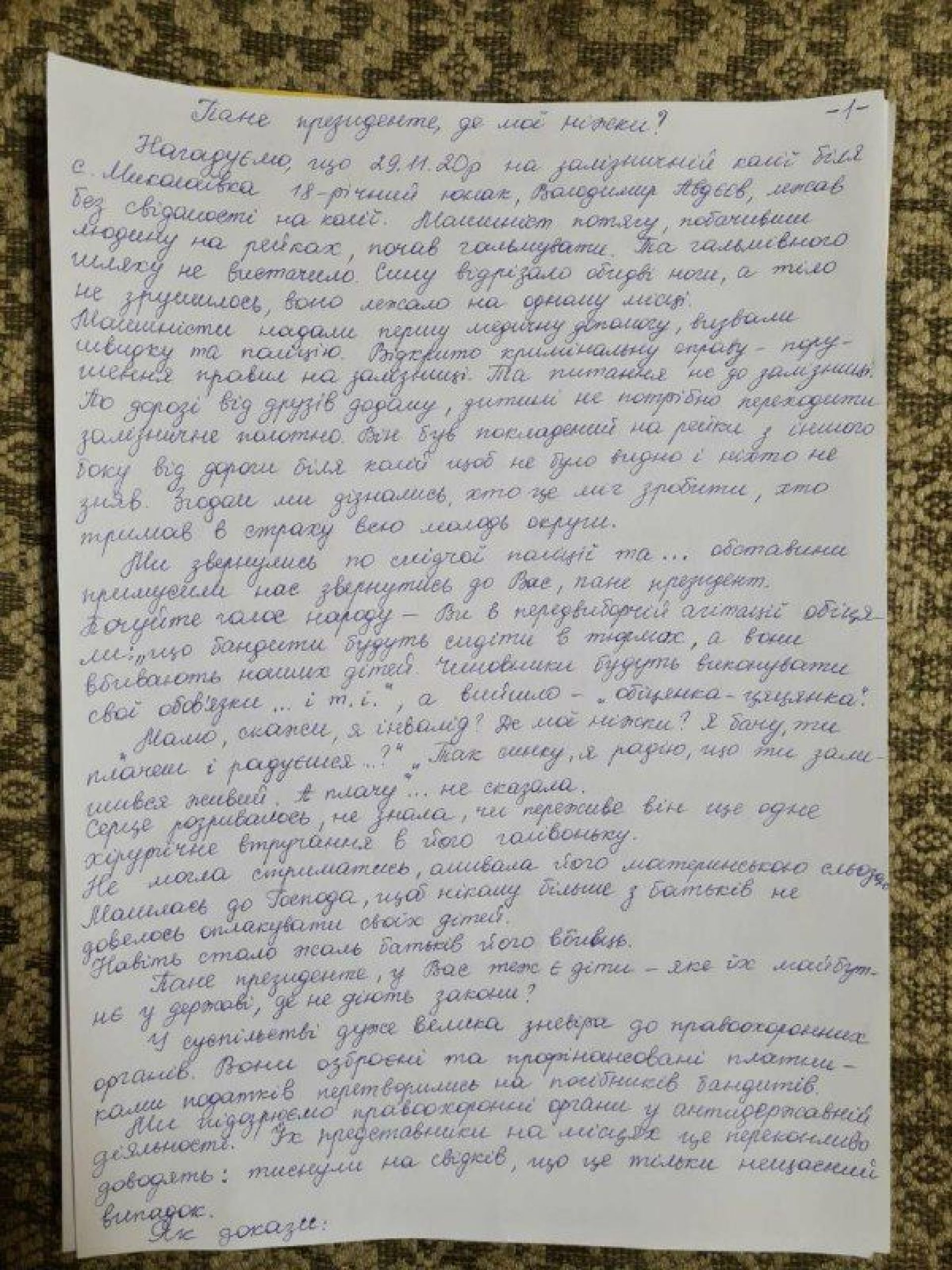 Батько хлопця переконаний, що співробітники поліції роблять все, щоб справа виглядала, як нещасний випадок. Він написав навіть відкритого листа до президента Зеленського, аби в його адміністрації відреагували на ситуацію. Відповіді поки що немає.