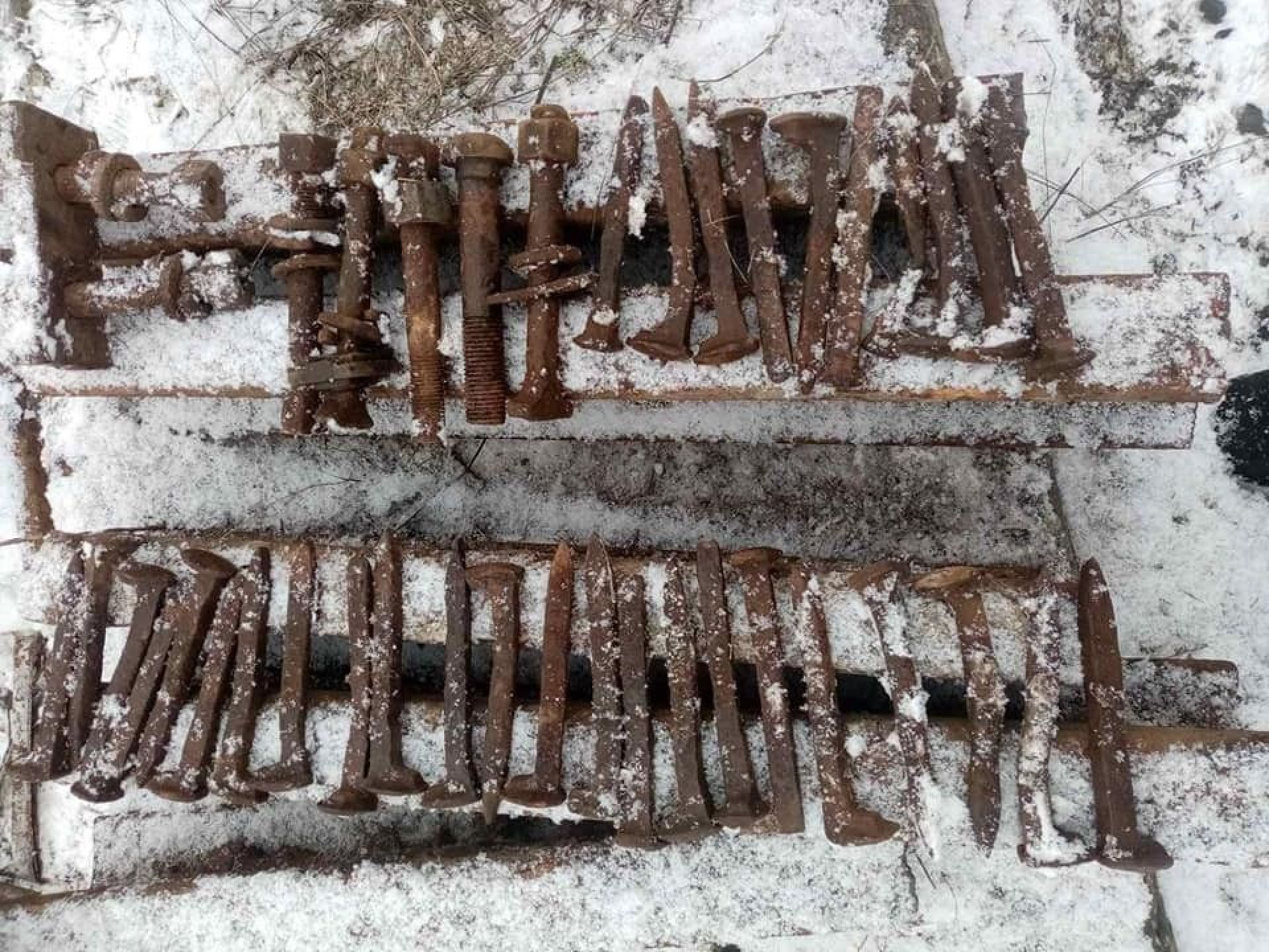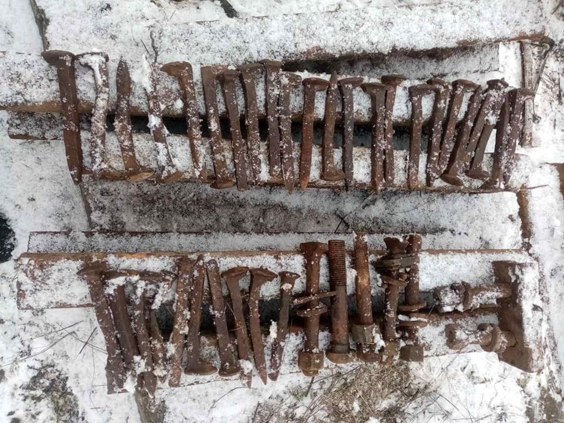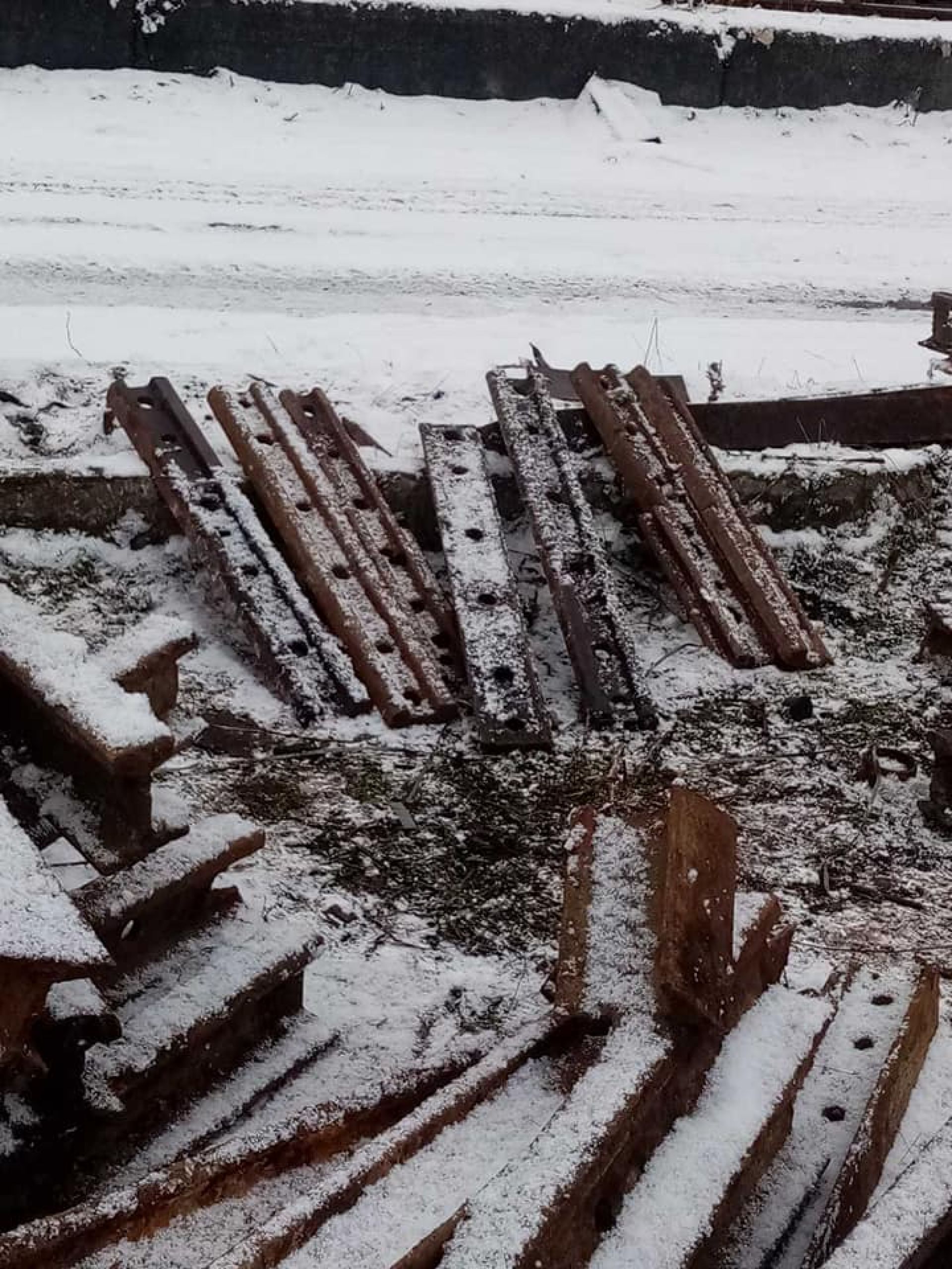 Подивіться фото вилучених з вагону деталей, надані Юлією Мазур. Металобрухт іржавий, тож мало схожий на частини залізничного полотна, які щойно були в експлуатації: