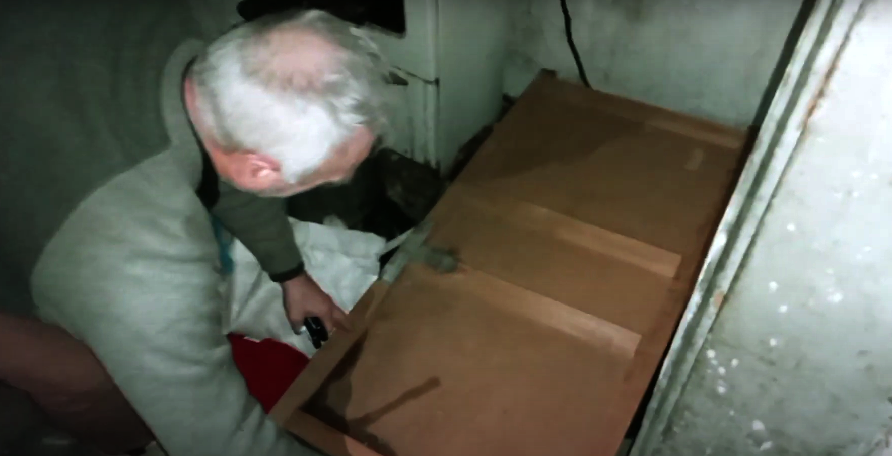 На запитання, де лежить дитина, Іщук піднімається і йде у сусідню кімнату. Коли відчиняє двері, стає чути, як вони сильно скриплять. Нагадують крик малої дитини.