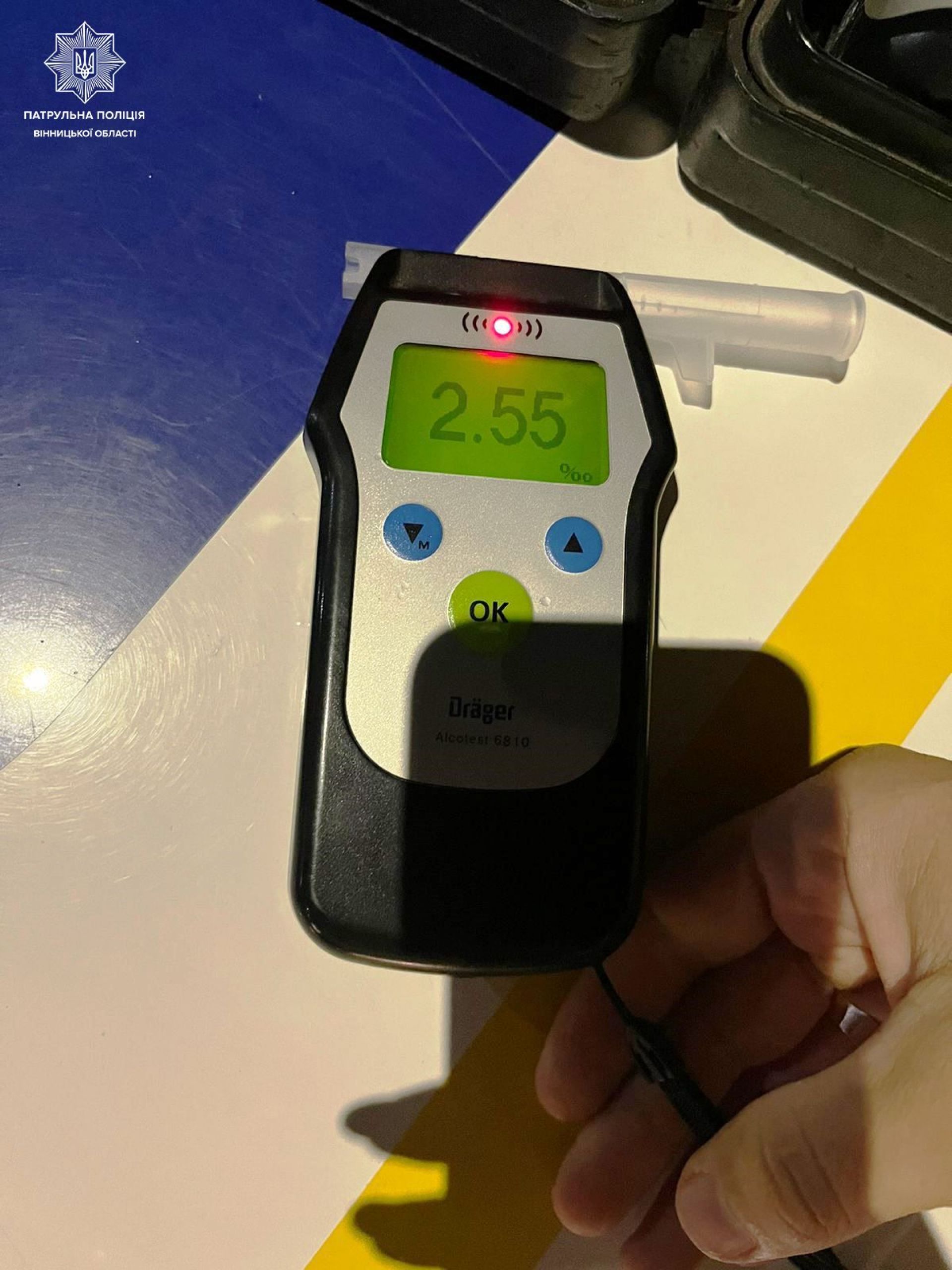 У Вінниці зупинили водія, рівень алкоголю в крові якого перевищував норму в 11 разів