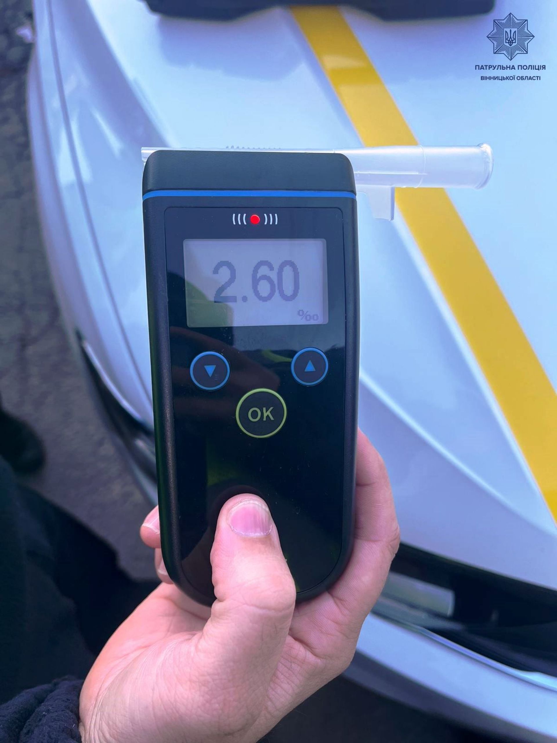 — З нього вийшла водійка, яка мала ознаки сп'яніння: запах алкоголю з порожнини рота, нечітку мову та нестійку ходу, — кажуть інспектори. — Жінці запропонували пройти перевірку на спецприладі Драгер. Результат огляду — 2,60 проміле алкоголю.