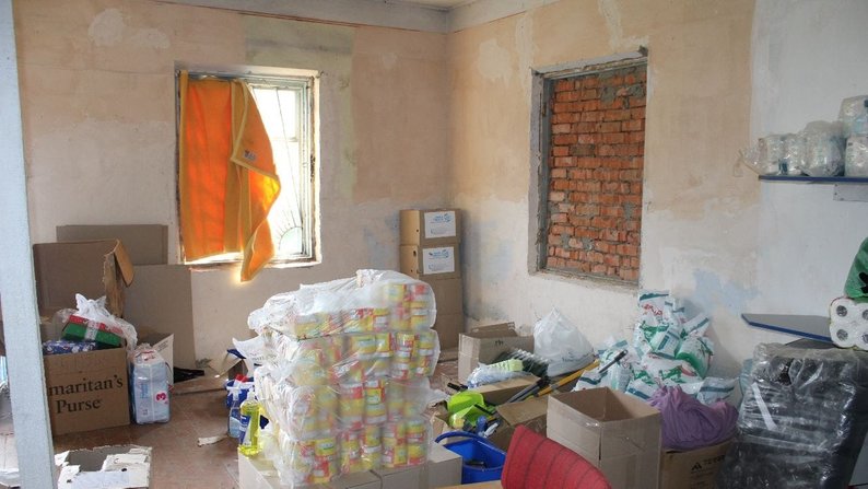 Це вище згадана історія про події березня 2022 року. У приміщенні місцевої бібліотеки, яка стала логістичним хабом, троє жінок сортували допомогу, що надходила від іноземних донорів та небайдужих калинівчан.