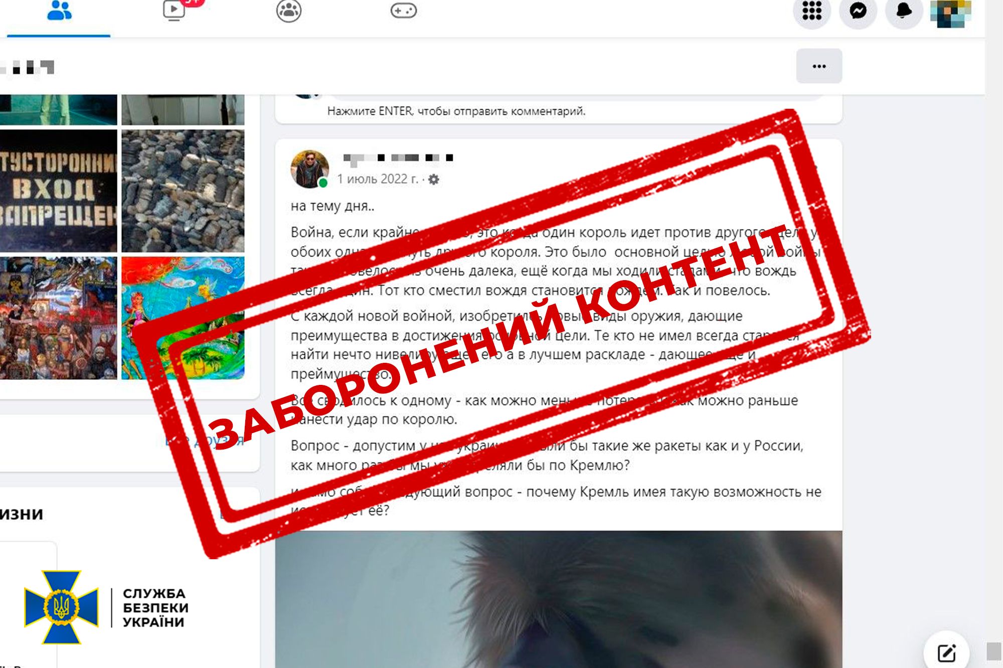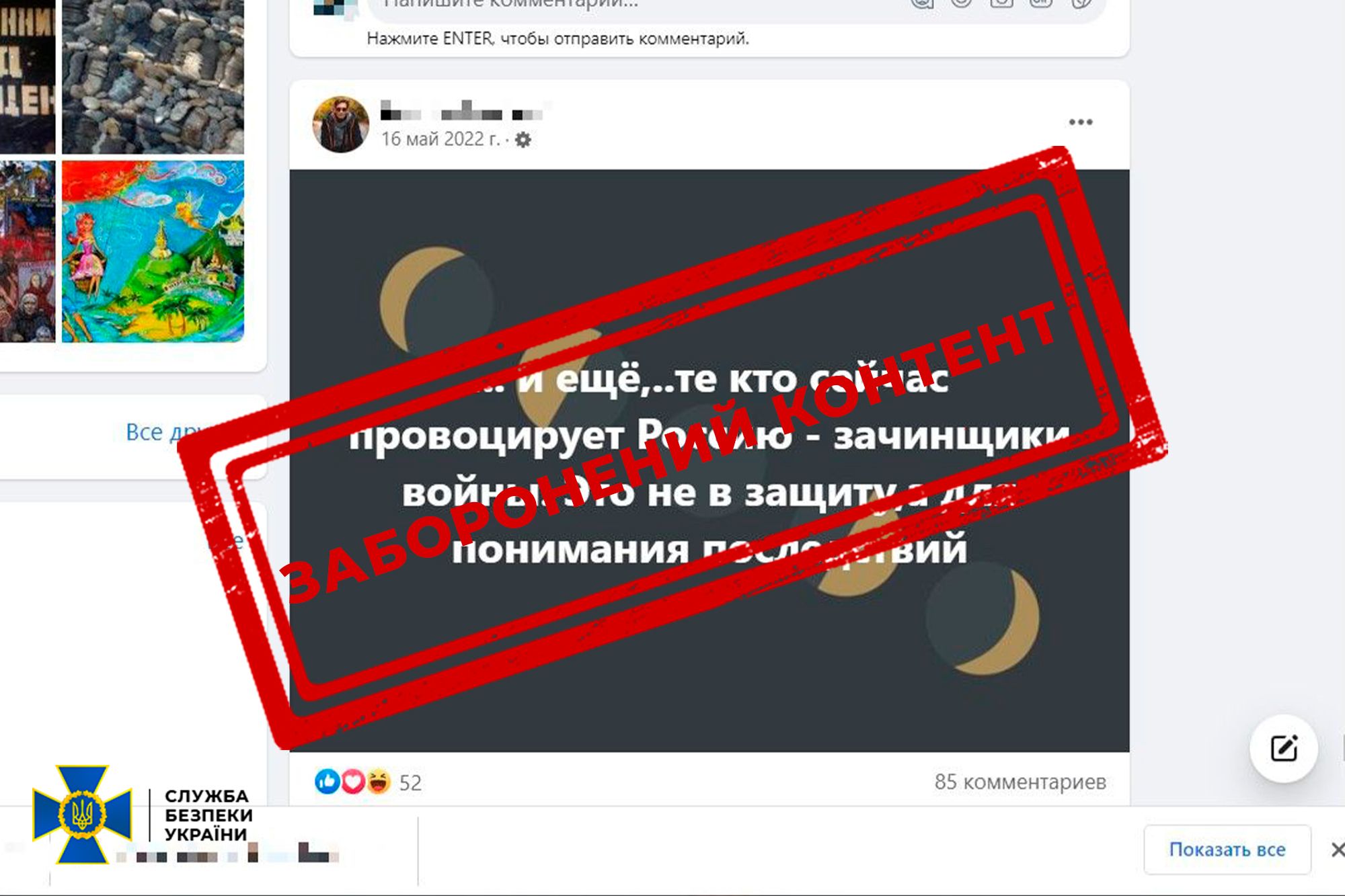 Зловмисник через власний акаунт у фейсбуці розміщував «дописи», в яких заперечував збройну агресію рф проти України та героїзував російських військовослужбовців.