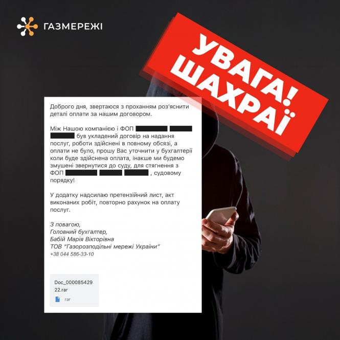 - Шахраї намагаються обдурити абонентів «Газмережі». Вони розсилають фішингові листи з вимогою оплатити рахунки. Будьте пильними та не діліться своїми даними з незнайомцями.