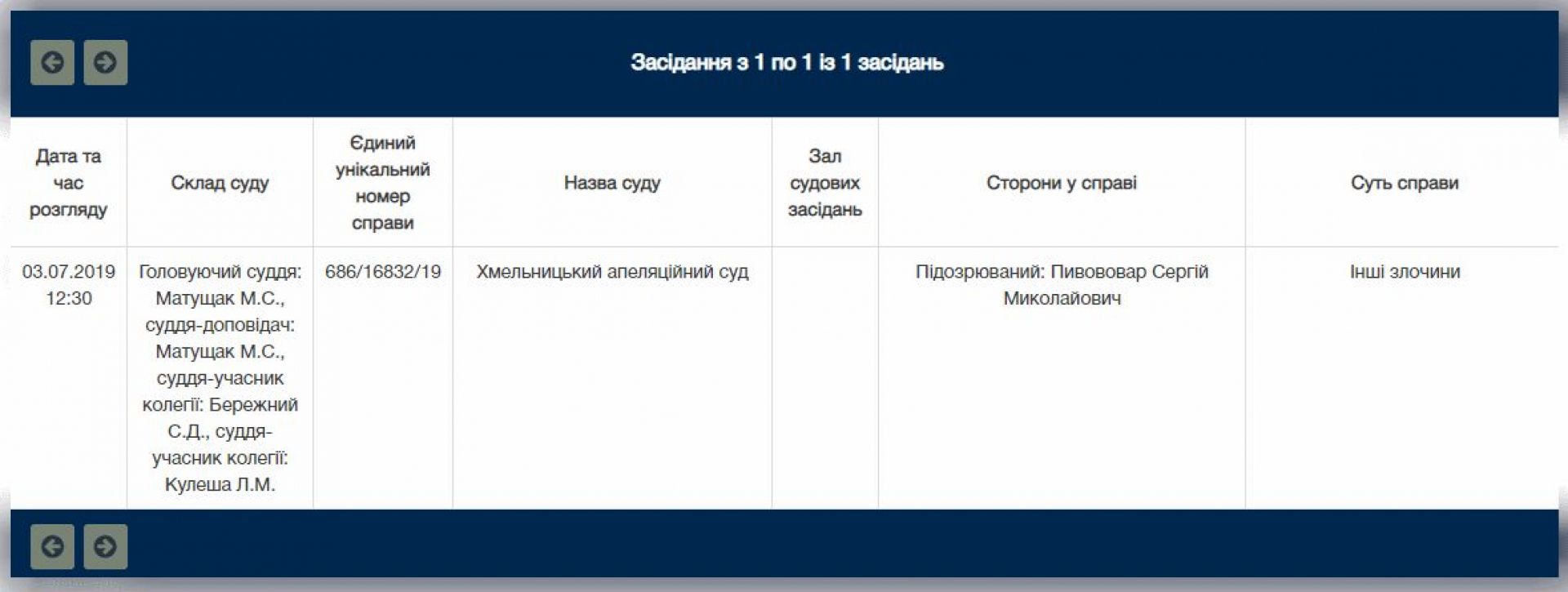 Тепер справа уже з’явилася у розкладі засідань. Перегляд запобіжного заходу відбудеться у Хмельницькому апеляційному суді в середу, 3 липня. Судді: Микола Матущак, Сергій Бережний, Лариса Кулеша.