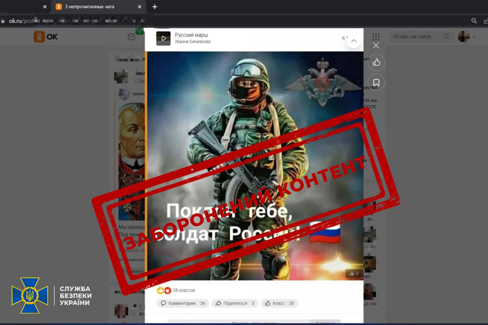 — Навіть після повномасштабного вторгнення 24 лютого 2022року, зловмисник із використанням особистої сторінки у забороненій російській соціальній мережі «Однокласники», висловлював сподівання на перемогу армії агресора та закликав окупантів до захоплення нашої держави. Кіберфахівці СБУ встановили, що у своїх антиукраїнських дописах фігурант возвеличував «подвиги» окупаційних військ, які мають «обов’язково перемогти НАТО», фанатично «бив поклони» російським окупантам та у віршах виправдовував збройну агресію рф проти України, — зазначають в СБУ. — Ініційовані у межах кримінальних проваджень експертизи засвідчили, що ці матеріали містять публічні заклики до умисних дій з метою зміни меж території України, агітацію до агресивної війни та виправдовування збройної агресії рф проти України.
