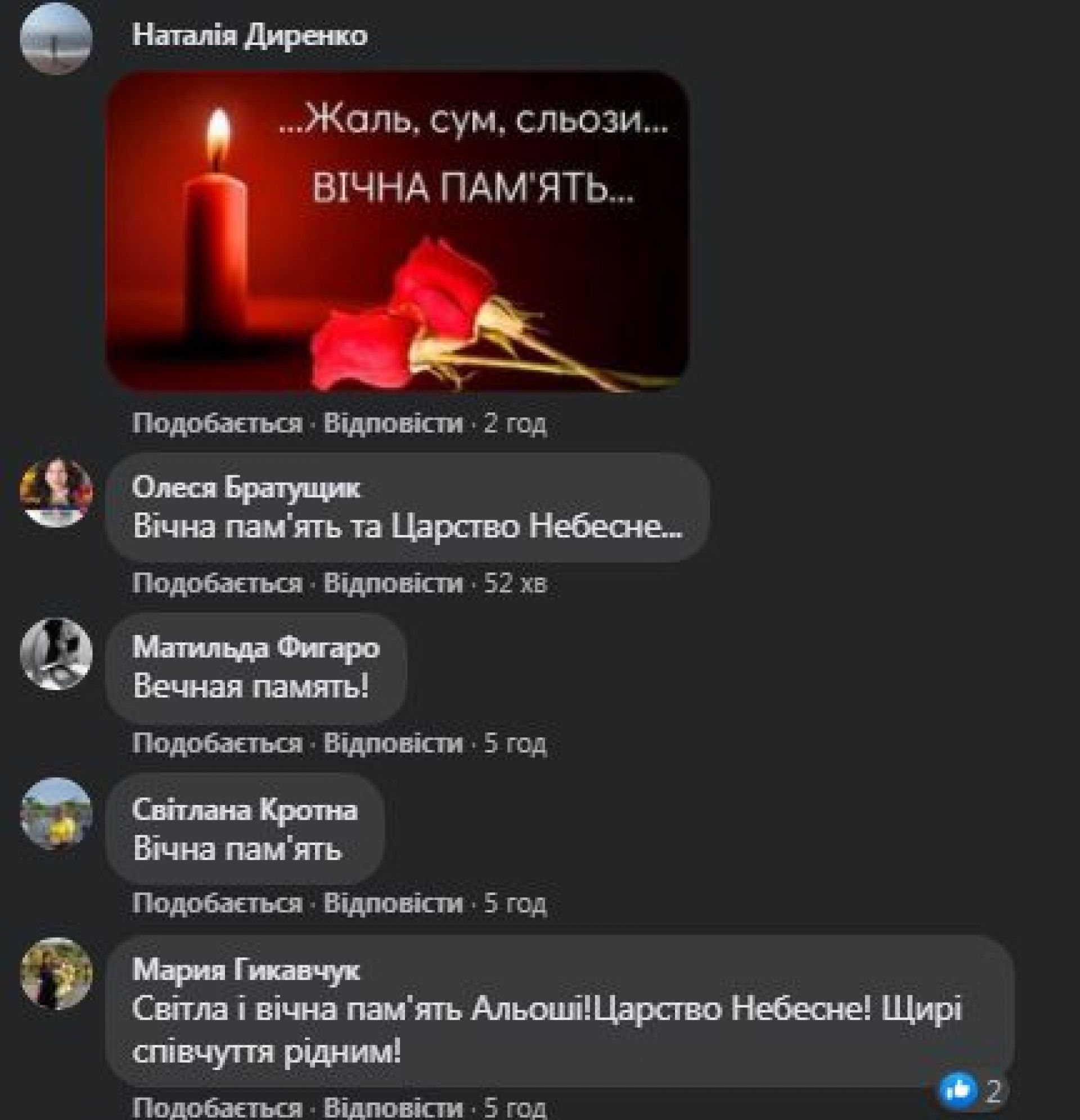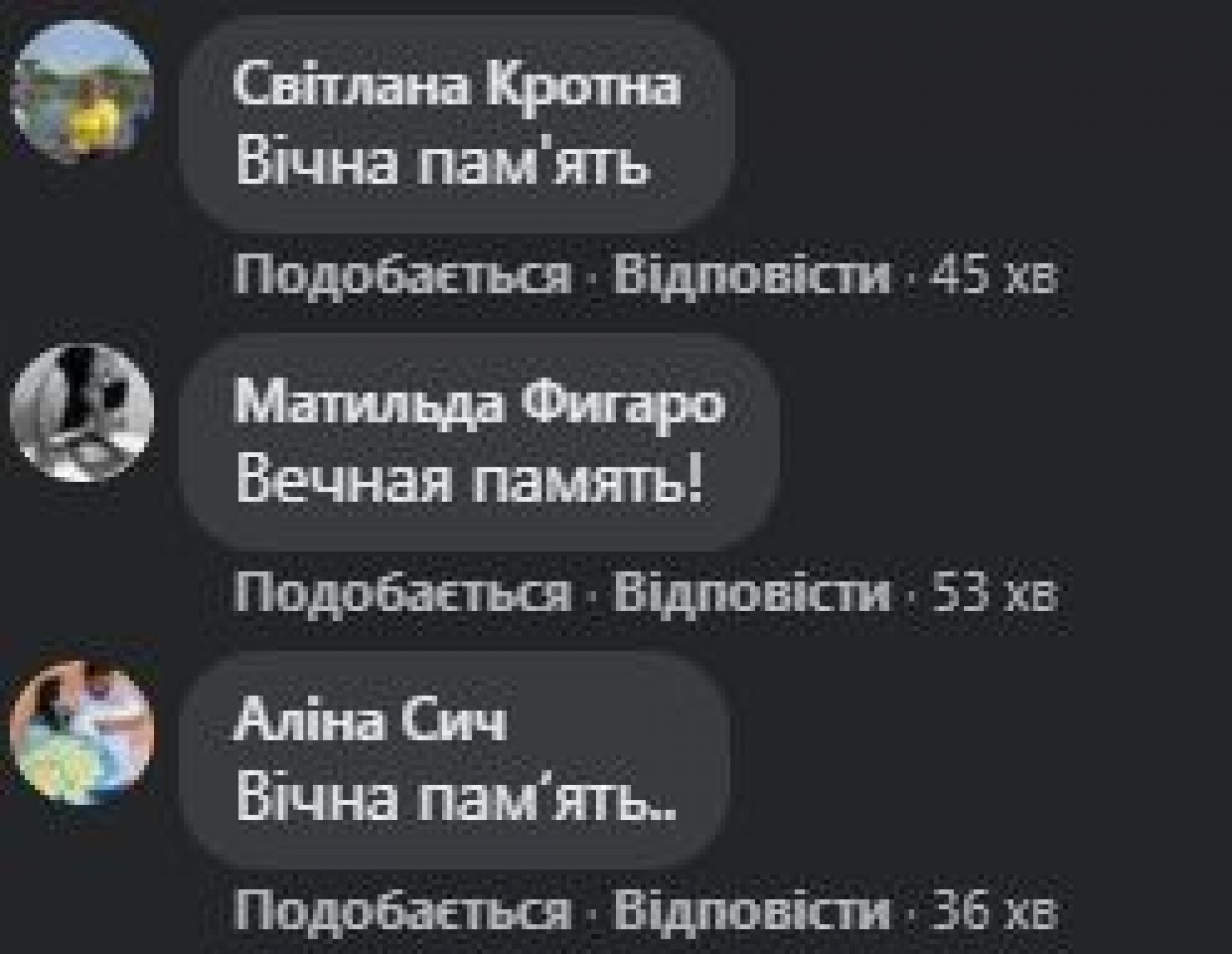 «Педагогічний та учнівський колектив Першої в скорботі…10.07 пішов з життя учень нашої гімназії, вірний друг та однокласник, чудовий син, брат та онук, — читаємо у дописі. — Висловлюємо щирі співчуття рідним та близьким. Вічна пам'ять!».