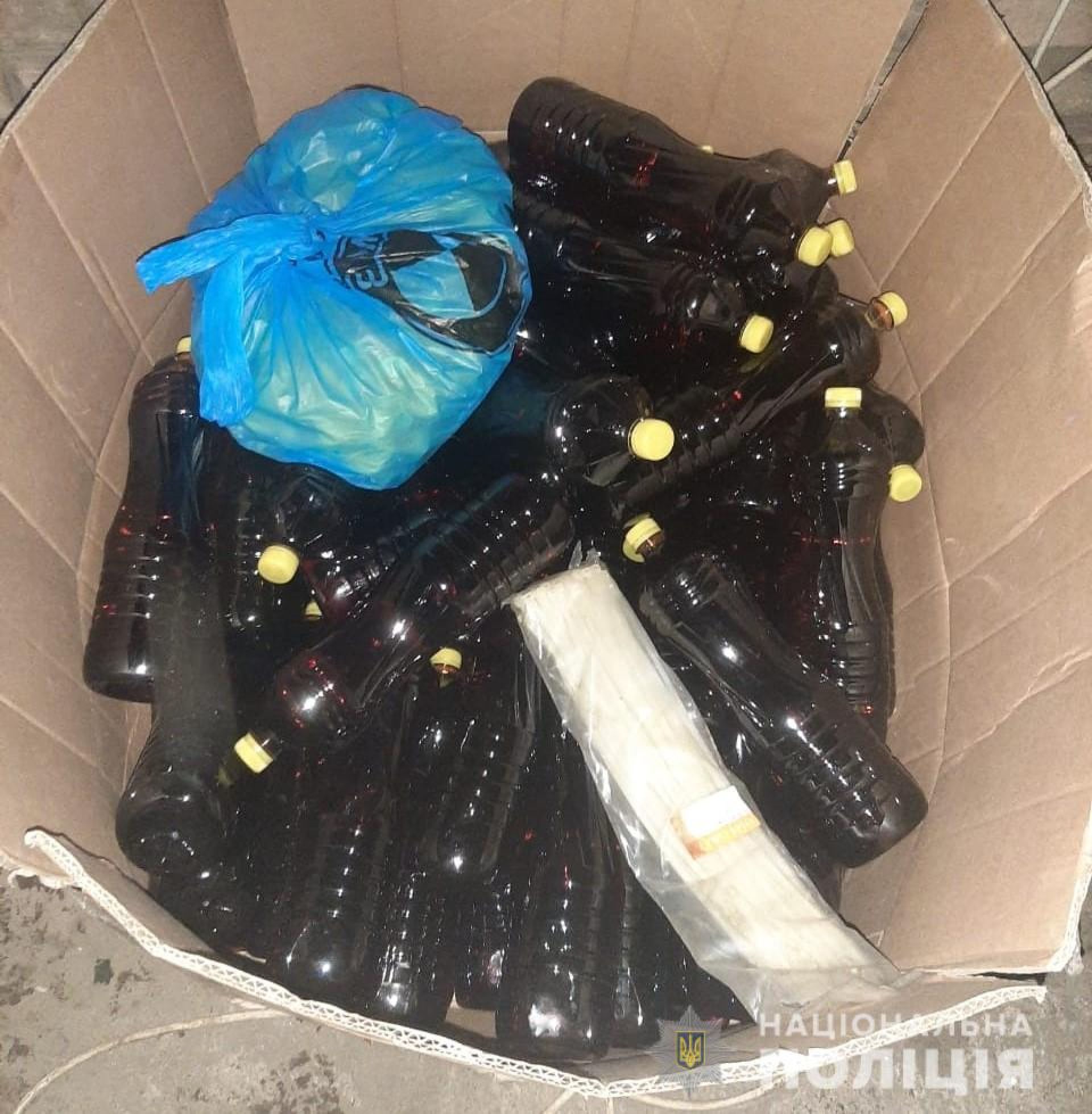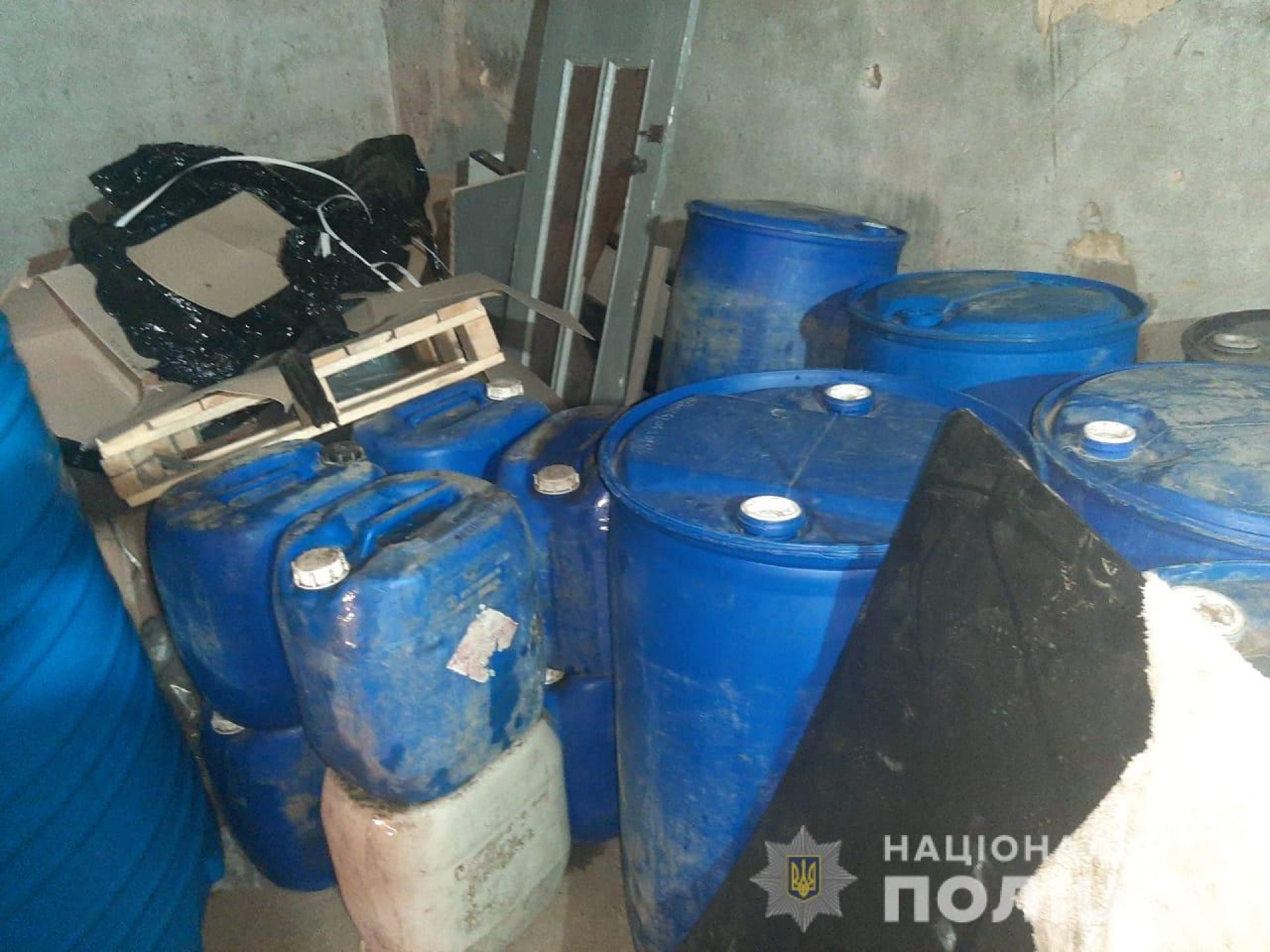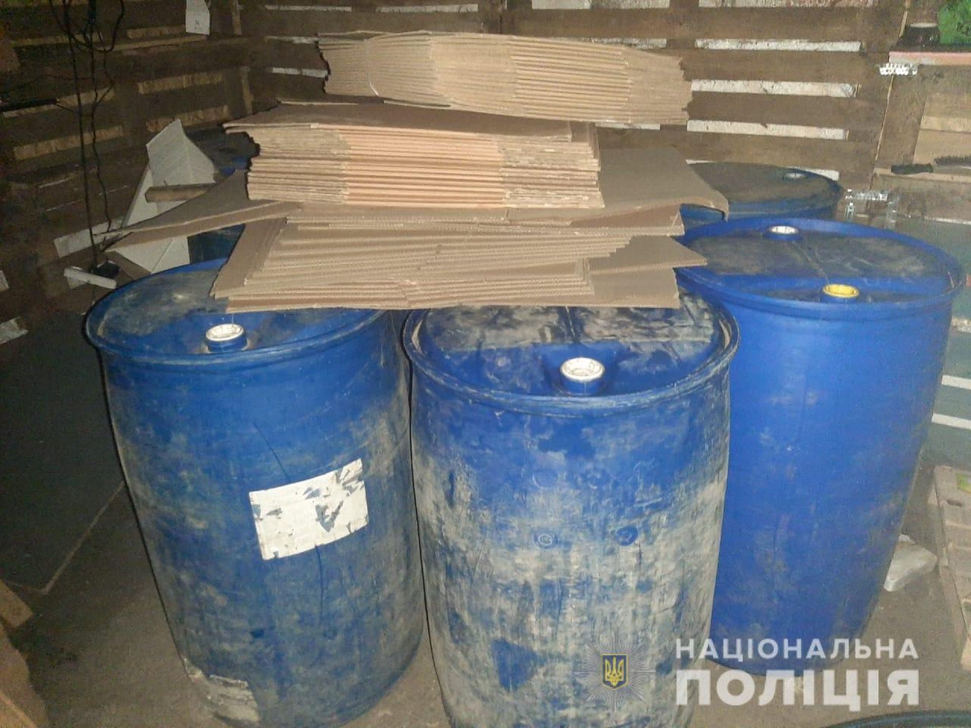 — Для документування правопорушення, передбаченого ст. 204 КК України (незаконне виготовлення, зберігання, збут або транспортування з метою збуту підакцизних товарів), та прийняття законного рішення поліцейські викликали представників фіскальної служби, — йдеться у повідомленні поліції. — Під час огляду приміщення вилучено близько 1 тони спиртовмісної продукції, 70 пластикових пляшок ємністю по 1,5 л, 50 тетрапаків по 3 л, обладнання для виготовлення алкогольної продукції, пусту тару, корки тощо.