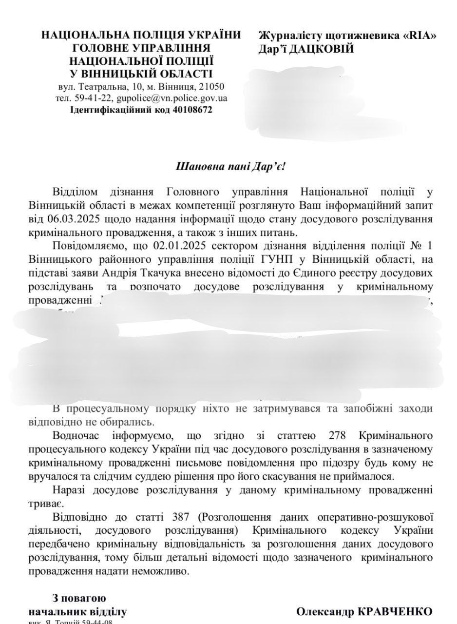 Журналістка «20 хвилин» надіслала запит до поліції.