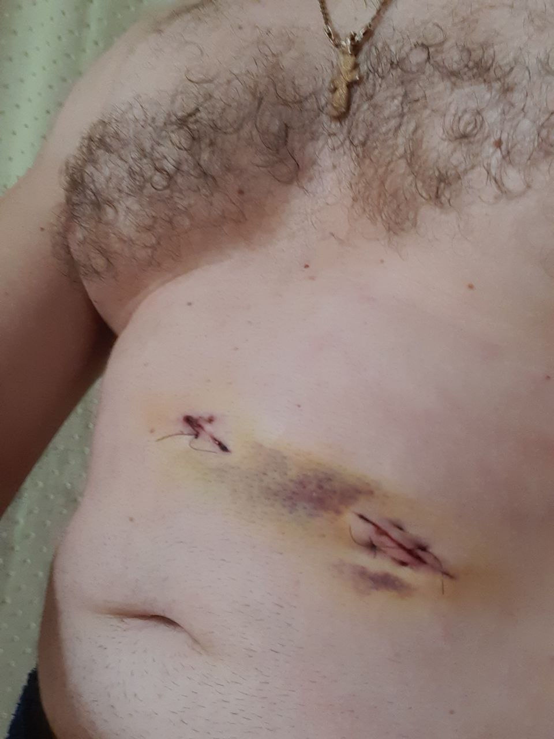— Але все ж, коли мене вже вели до автомобіля швидкої, то була така картина: стоїть він, біля нього — працівники поліції. Купа людей уже позбігалася, бо приїхало багато поліцейських машин, швидка, всім цікаво. Я йду, і він при всіх цих свідках, при працівниках поліції викрикує наступні фрази дослівно: «Я тебе вб'ю все одно. У мене є гранати. Я тобі кину гранату в квартиру. Розстріляю з калаша. Ти жид пархатий. Без таких буде краще жити». Це чули десятки людей, — розповідає чоловік.