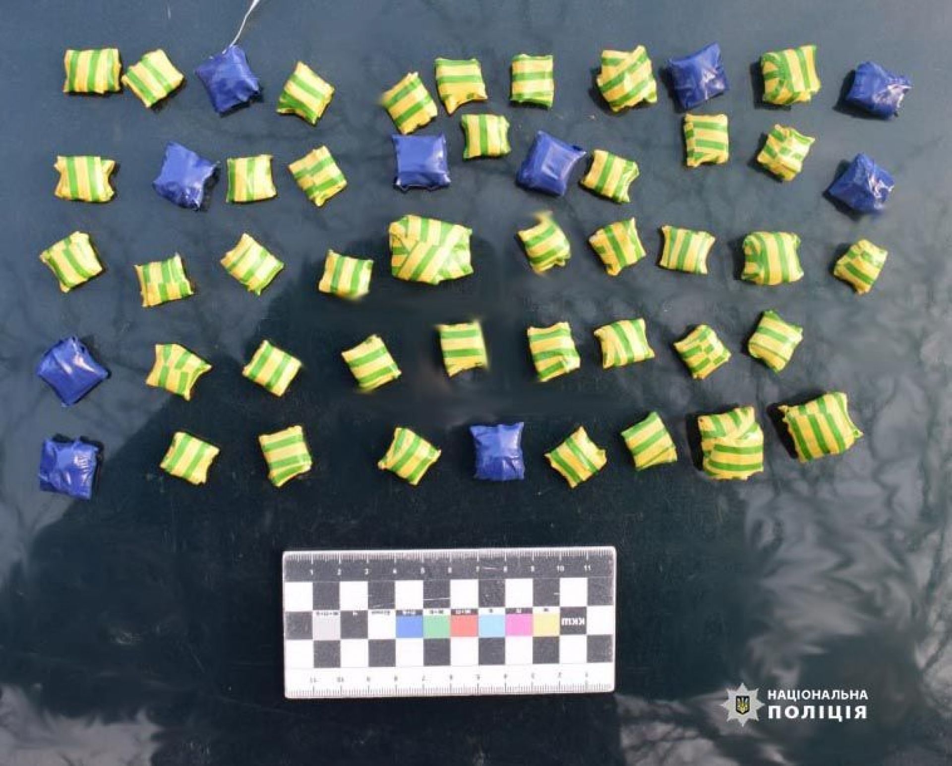 Під час проведення слідчих дій, зловмисник вказав 77 місць, які він розклав напередодні. Загалом поліцейськими вилучено 197 розфасованих поліетиленових пакетів з амфетаміном.
