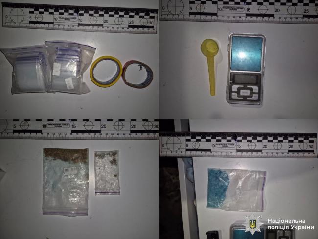 Поліцейські вилучили у фігуранта 15 розфасованих поліетиленових пакетиків канабісу та один згорток з психотропною речовиною Альфа-PVP, які він не встиг розкласти. У ході проведення слідчих дій зловмисник вказав місця, де вже встиг розмістити кілька закладок з психотропною речовиною.