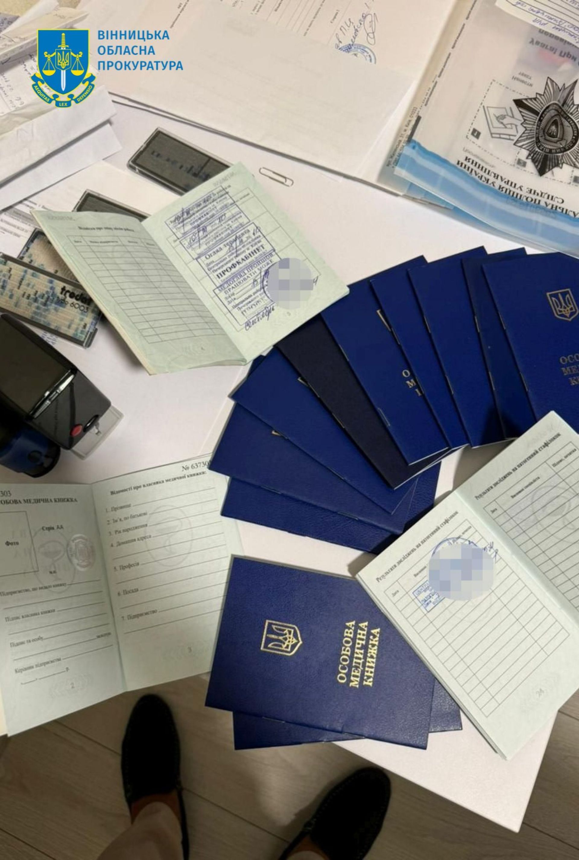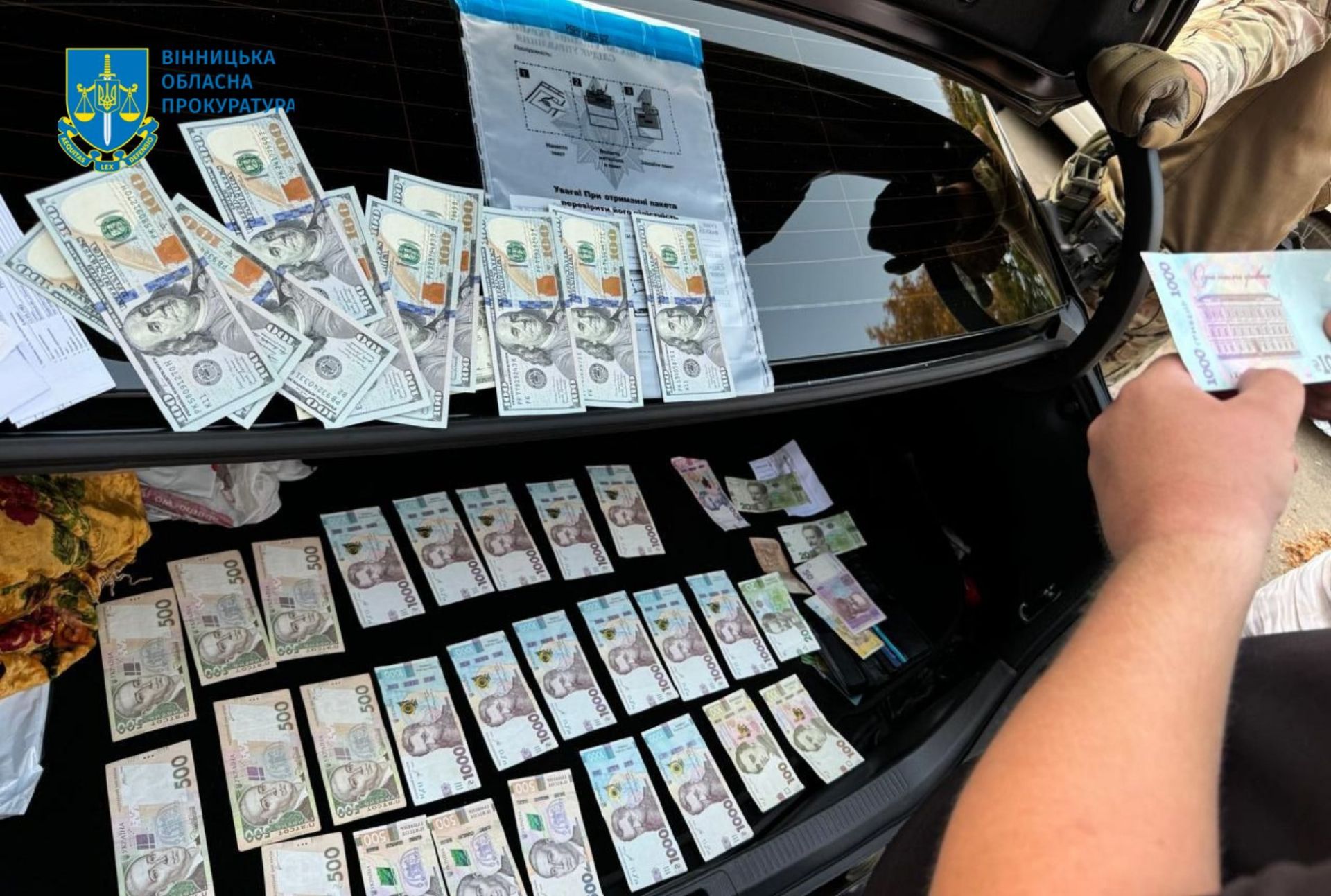 У ході досудового розслідування провели обшуки, під час яких вилучено речові докази злочинної діяльності — документи, підтверджуючі зазначені вище обставини, чорнові записи, грошові кошти тощо.