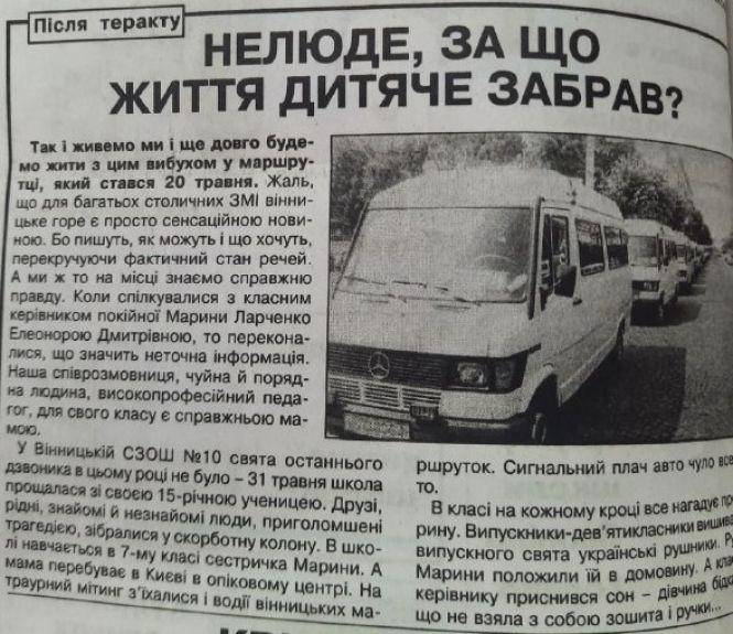 «Опіки 20-річної давнини стали неминучими для кожного...» Спогад про теракти у вінницьких маршрутках