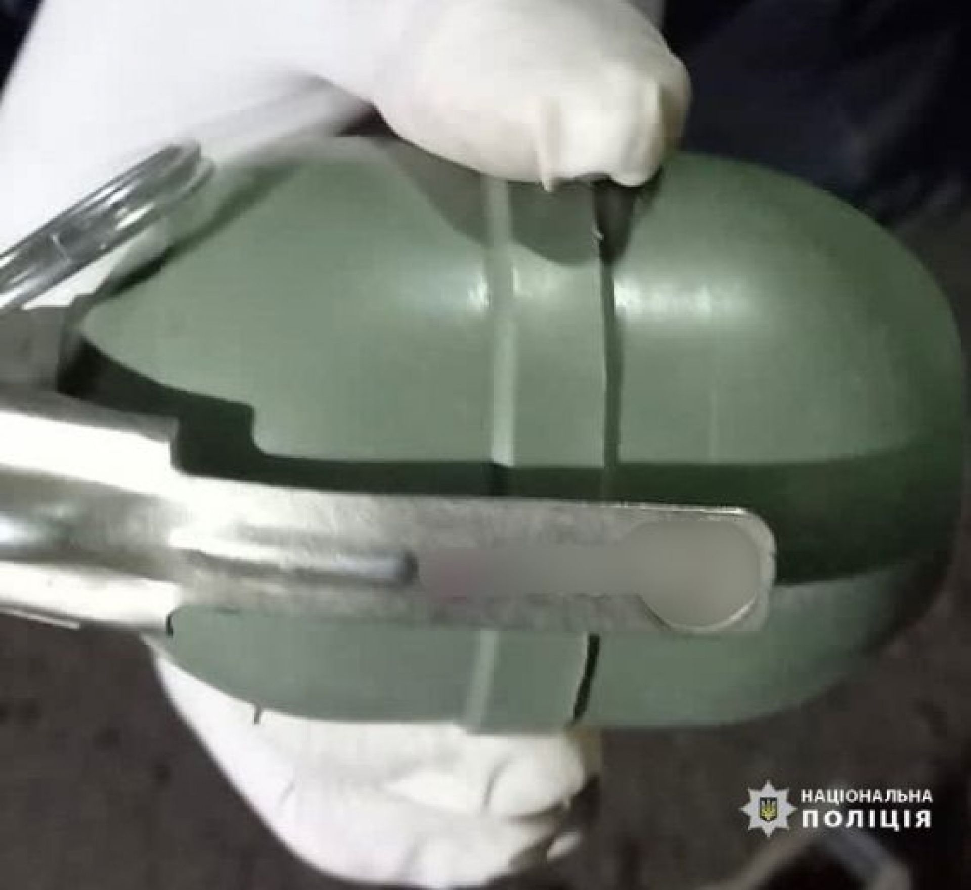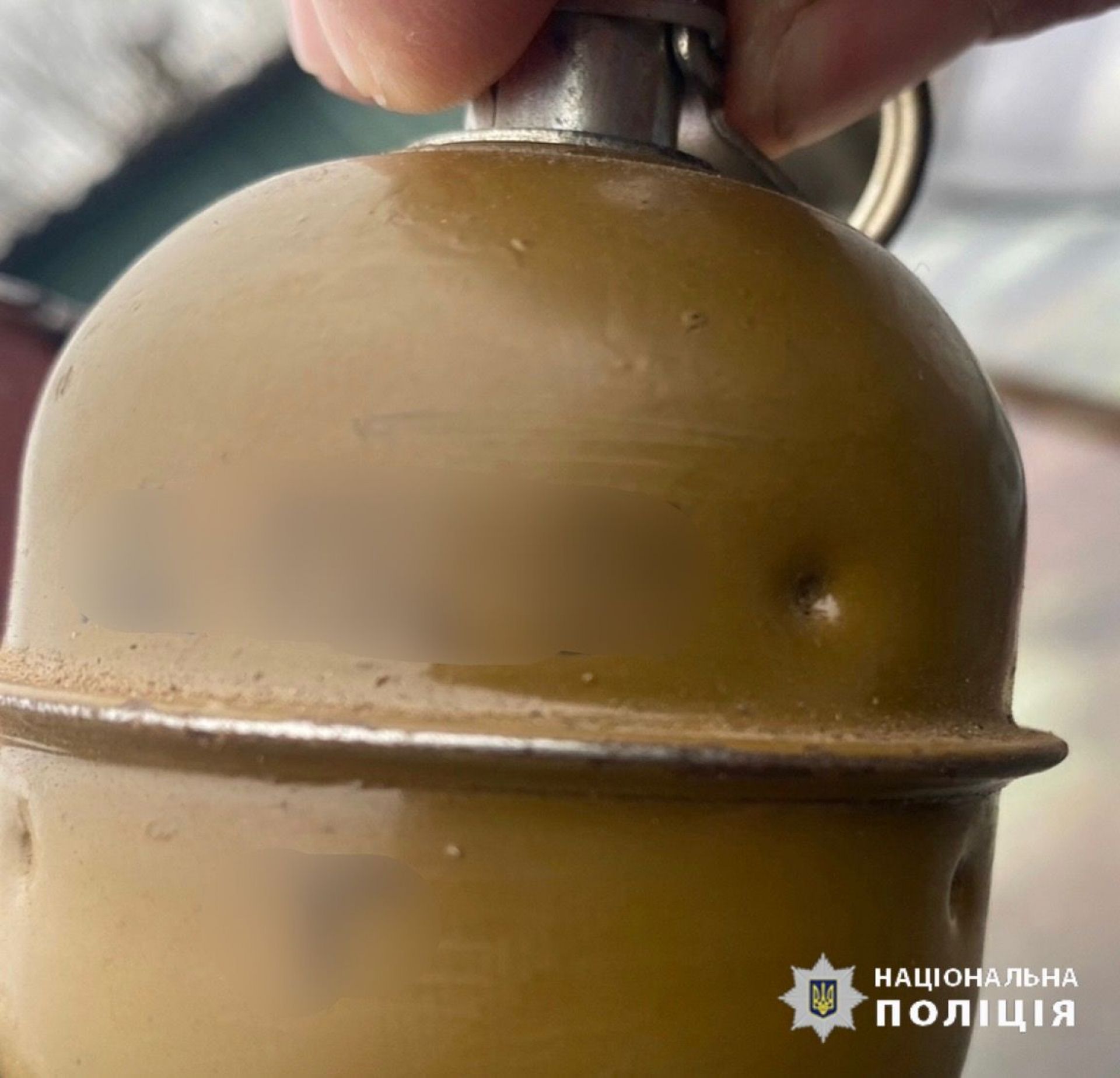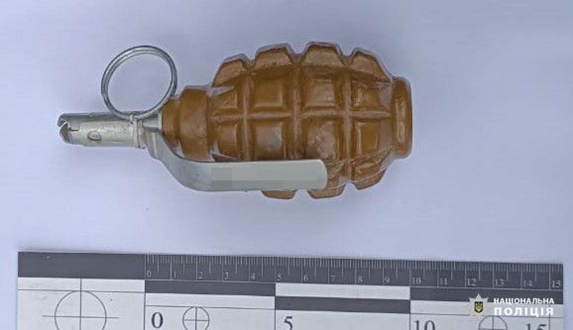 В ході огляду автомобіля поліцейські під водійським сидінням виявили та вилучили гранату Ф-1 із запалом.