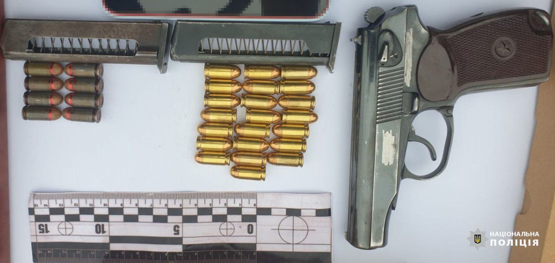 Під час поверхневої перевірки у водія правоохоронці виявили та вилучили пістолет Макарова зі знищеним ідентифікаційним номером, два магазини до нього та 30 набоїв калібру 9 мм.