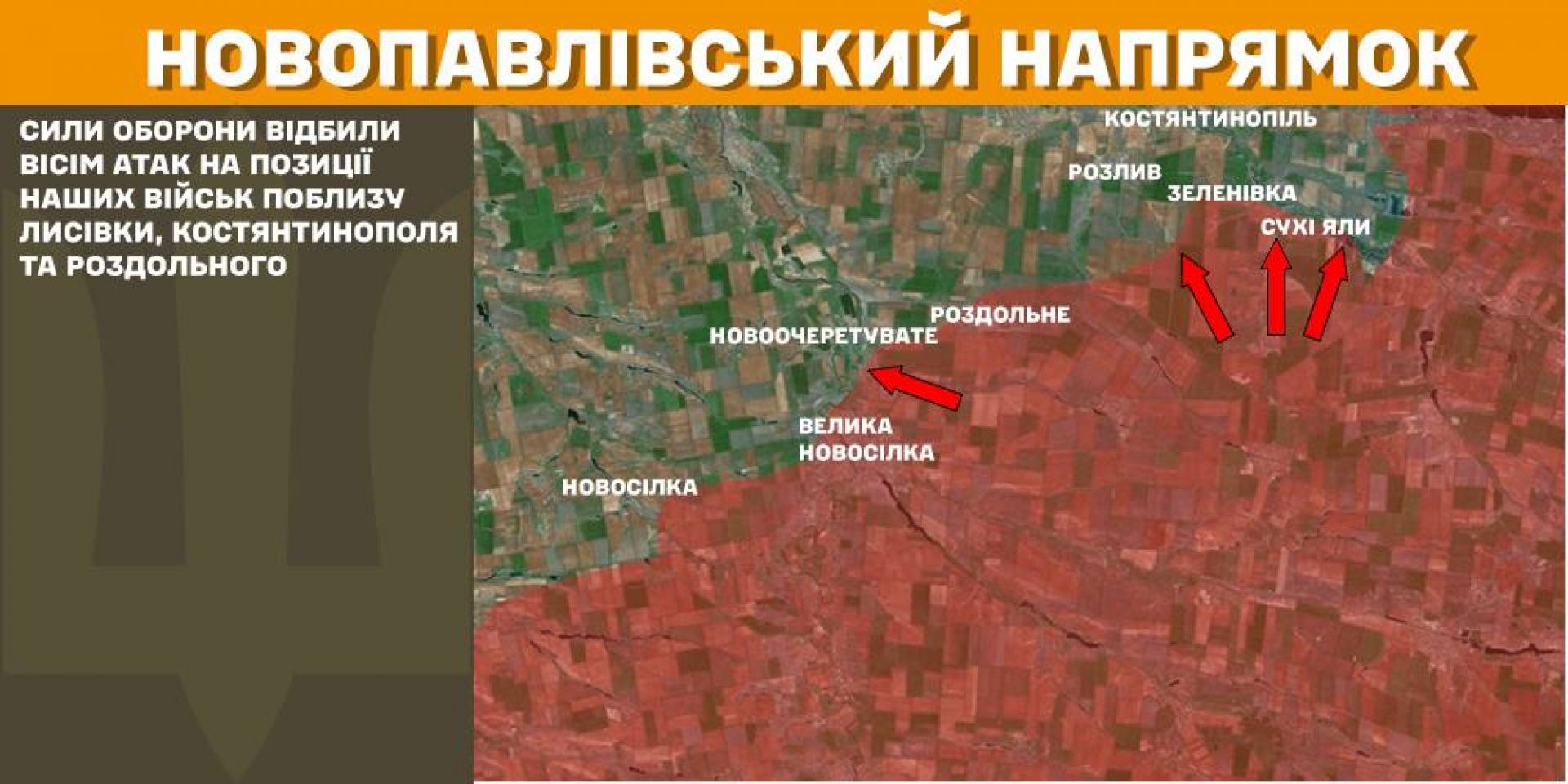 На Новопавлівському напрямку Сили оборони відбили вісім атак на позиції наших військ поблизу Лисівки, Костянтинополя та Роздольного.