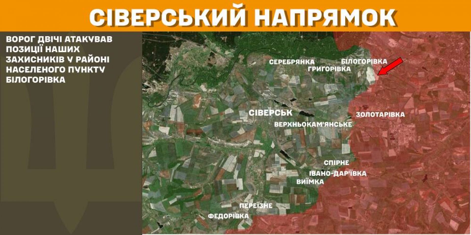 На Сіверському напрямку ворог двічі атакував позиції наших захисників у районі населеного пункту Білогорівка.