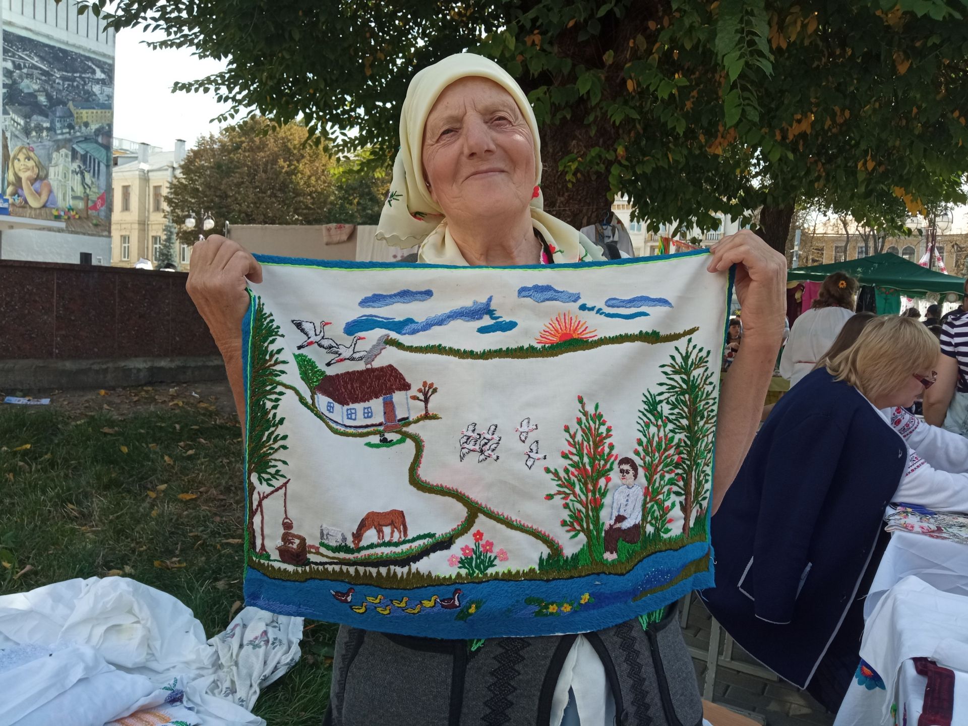 — Щоб вишити якусь роботу у мене може йти тиждень, а може й два-три дні, — знайомить нас зі своїми вишивками Галина Ковальська з Агрономічного. — Скажімо маленькі хустинки я вишиваю за кілька днів. Колись, як я ще була молодою, то такі носовички вишивали, як колодки чіпляли.