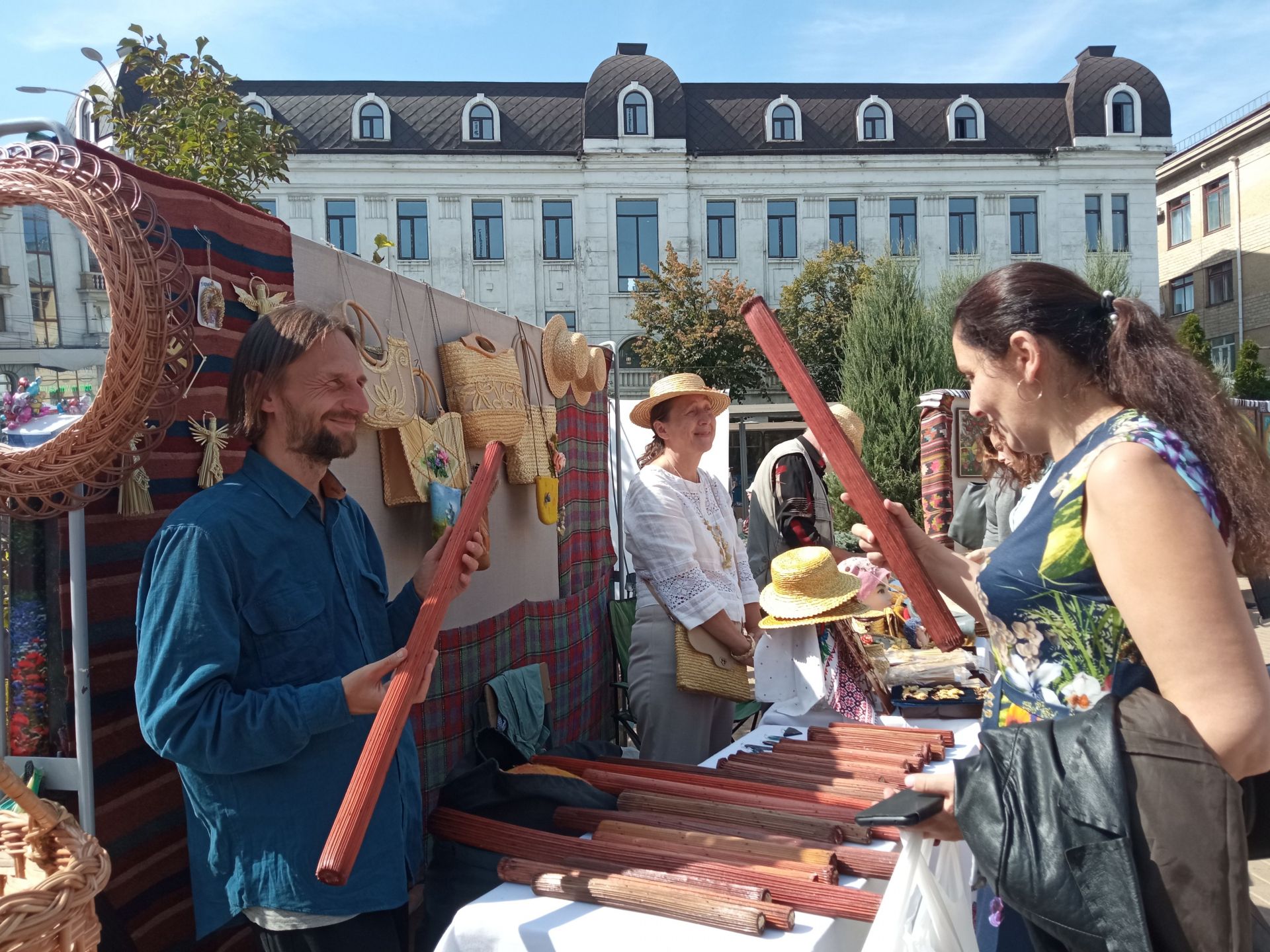 — Мене звати Володимир Віхренко, я приїхав із Баланівки Гайсинського району, — говорить чоловік і показує на музичні інструменти, які сам виготовляє. — Виготовляю я «зозульки», сопілочки різні (як для музикантів, так і для діток).