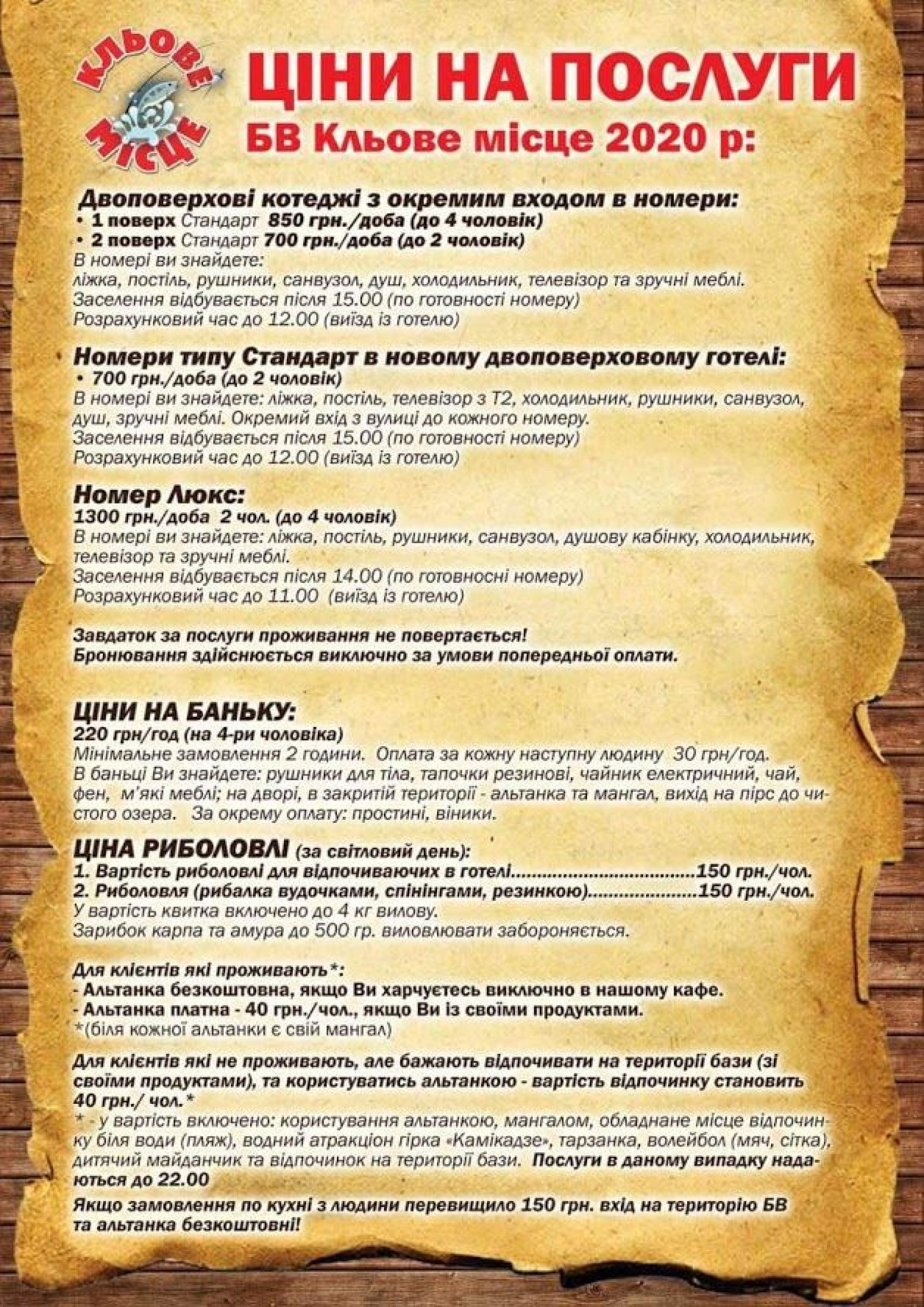 База відпочинку «Кльове місце» - це заміський готельний комплекс з широким асортиментом послуг, який знаходиться в 10-ти км від Вінниці на Тиврівському шосе.