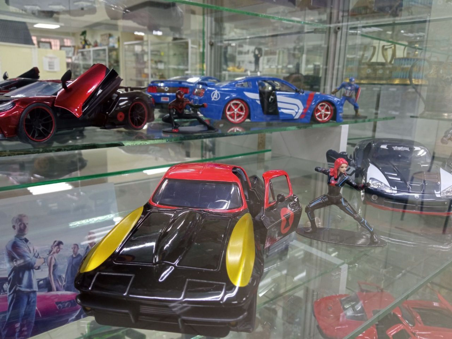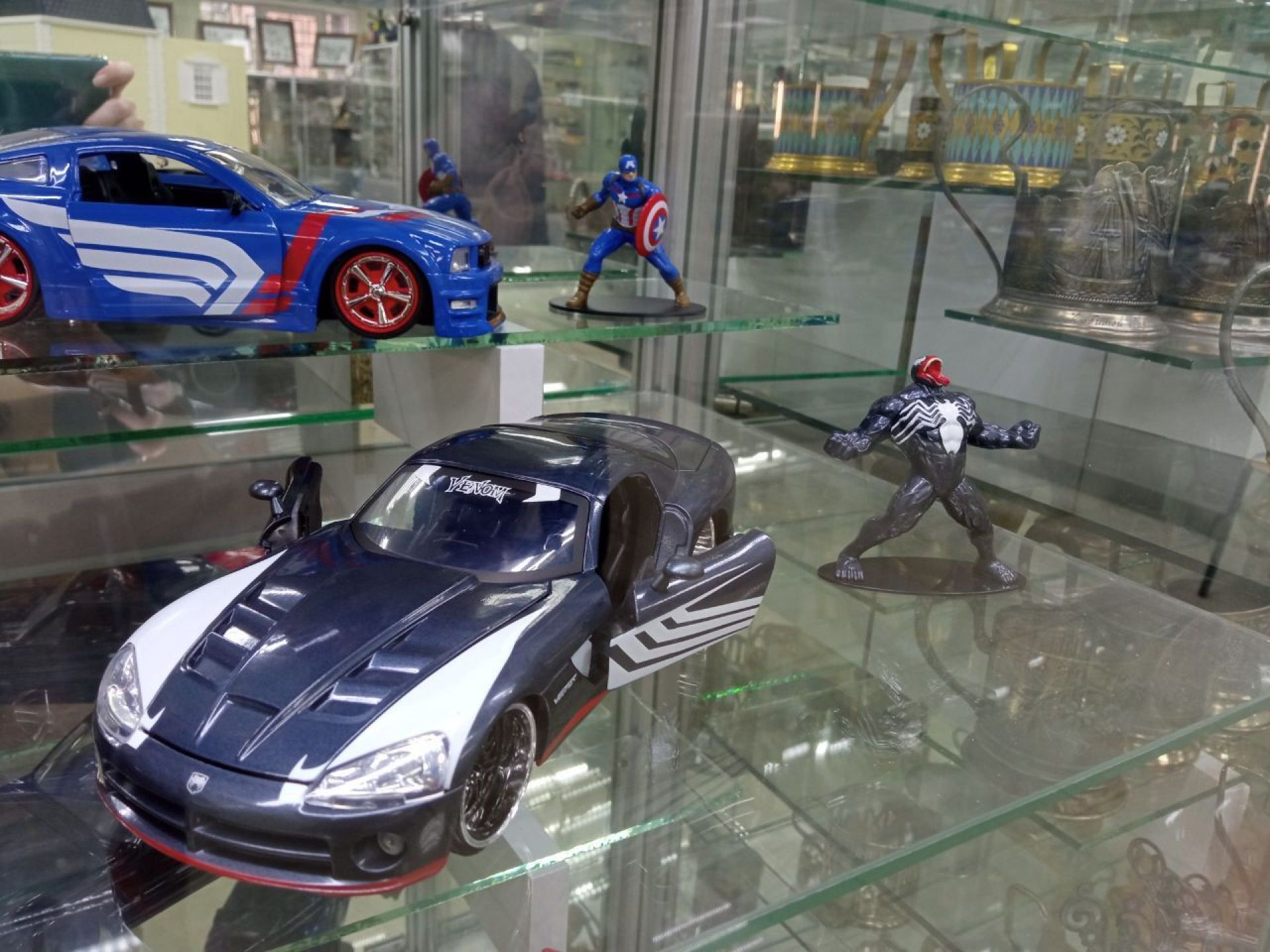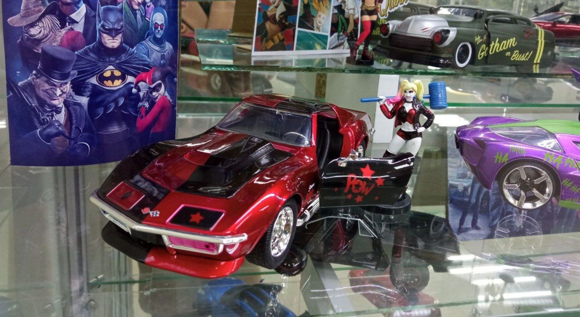Аби розглядати чотириколісні експонати було цікавіше, біля всіх авто поставили й фігурки головних героїв. Серед інших вже можна побачити Капітана Америку, Венома, Бетмена, Гарлі Квін і Джокера.