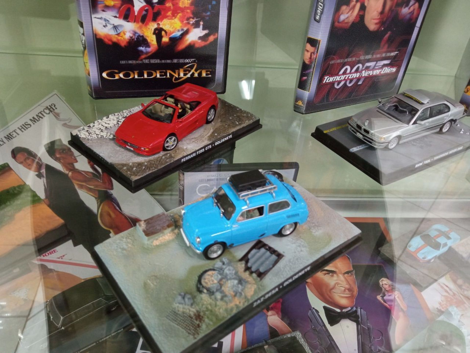 — У нас і до цього було чимало моделей із кінофільмів, але ми вирішили їх систематизувати й об’єднати в одну експозицію, — говорить директор музею Олександр Вдовиченко. — Кілька місяців тому ми дістали з різних наших шаф автомобілі Джеймса Бонда й перенесли їх у спеціальний куточок. Тепер тут близько 60 машин — це половина всесвітньої колекції, яка вийшла кілька років тому в Англії. Там всього десь 126 моделей, тому ми фактично зібрали вже половину бондіани.