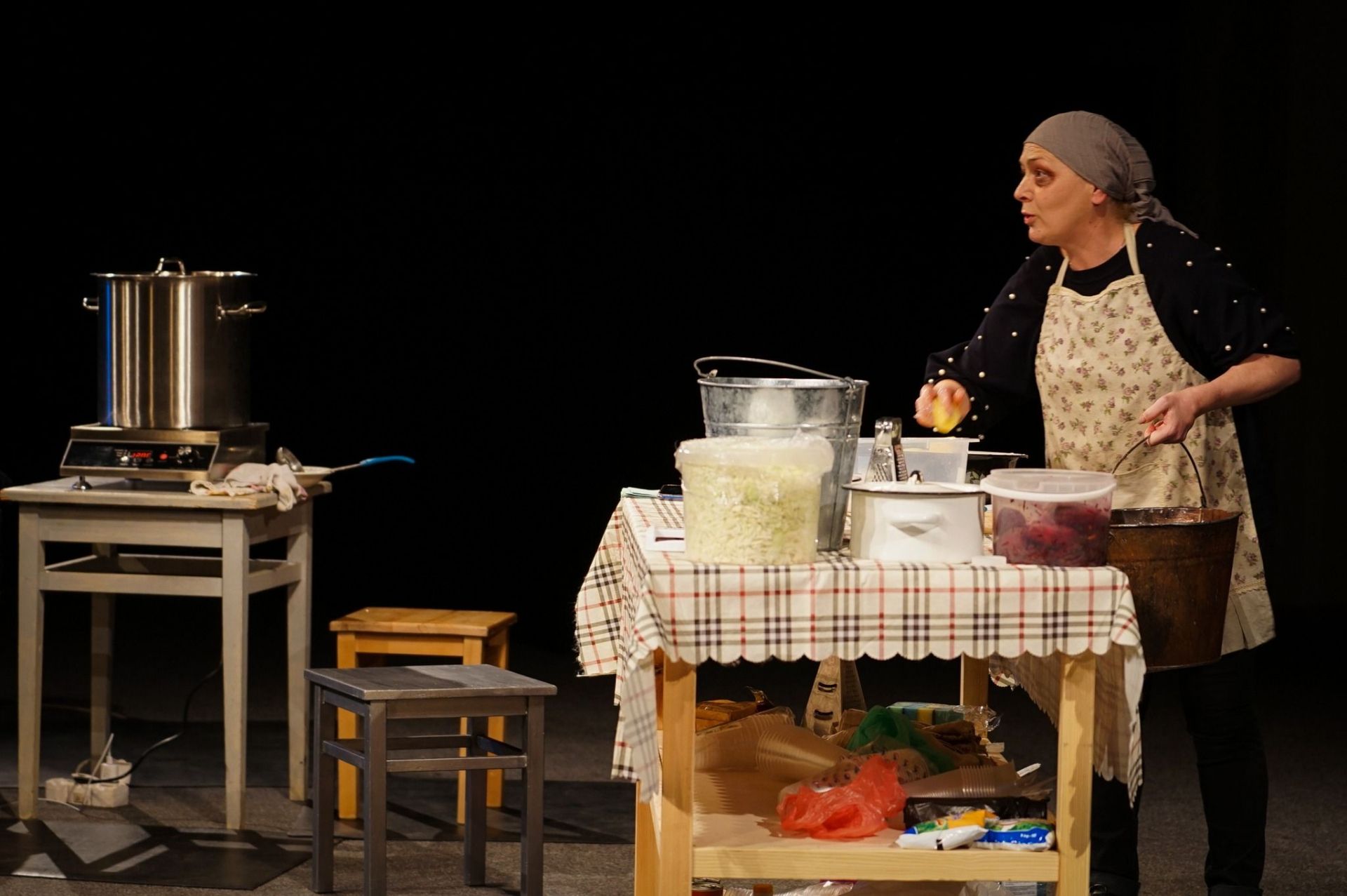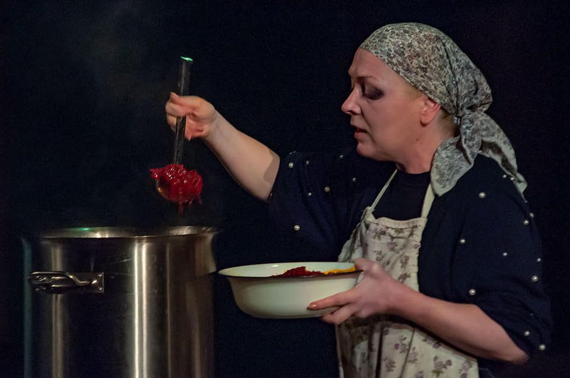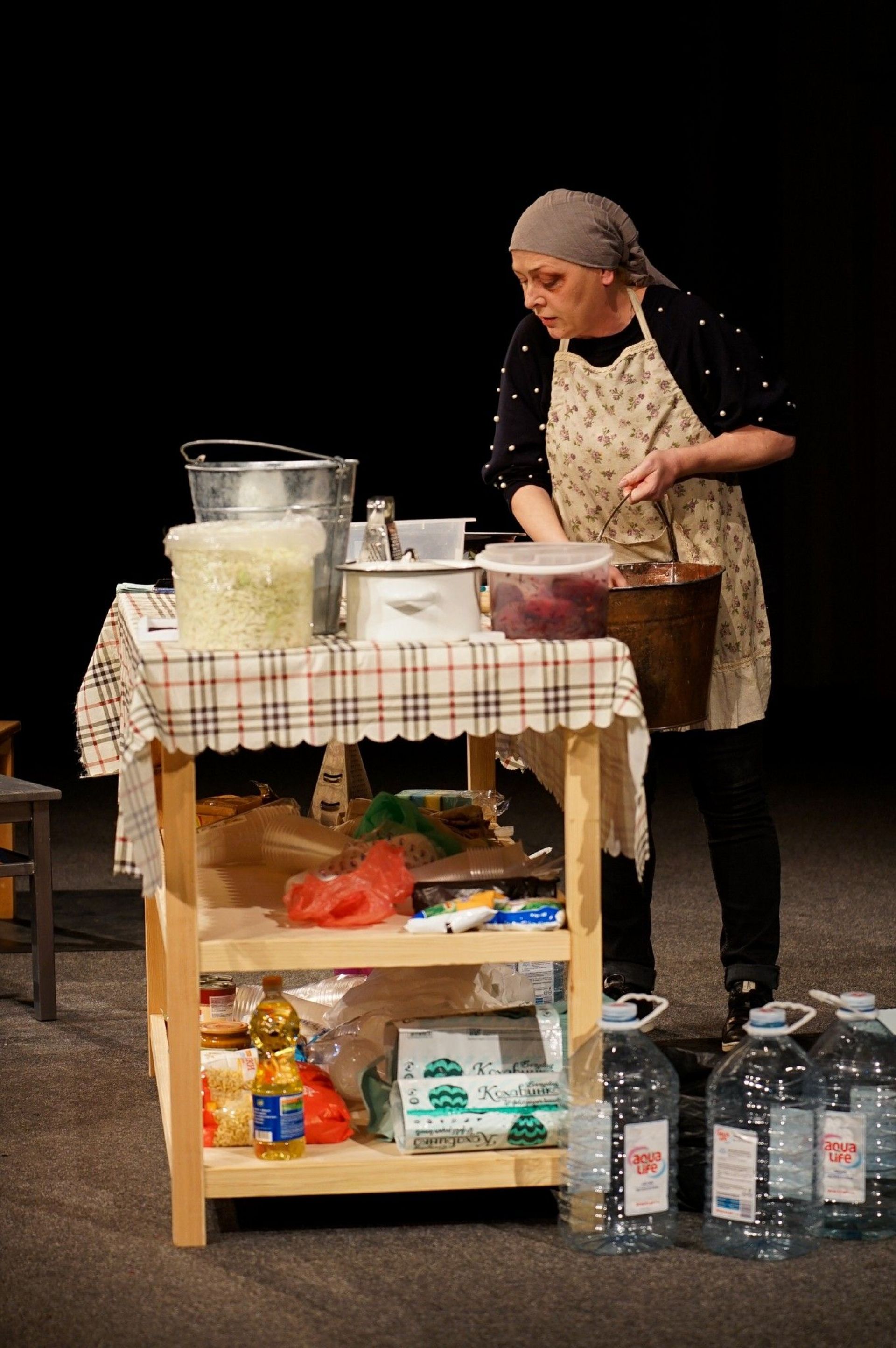 Окрема родзинка вистави у тому, що головна героїня, розповідаючи свою історію, прямо на сцені варить борщ. Вона чистить картоплю, тре моркву, шинкує капусту, і в цей час розповідає про жахіття, які пережила в окупації.