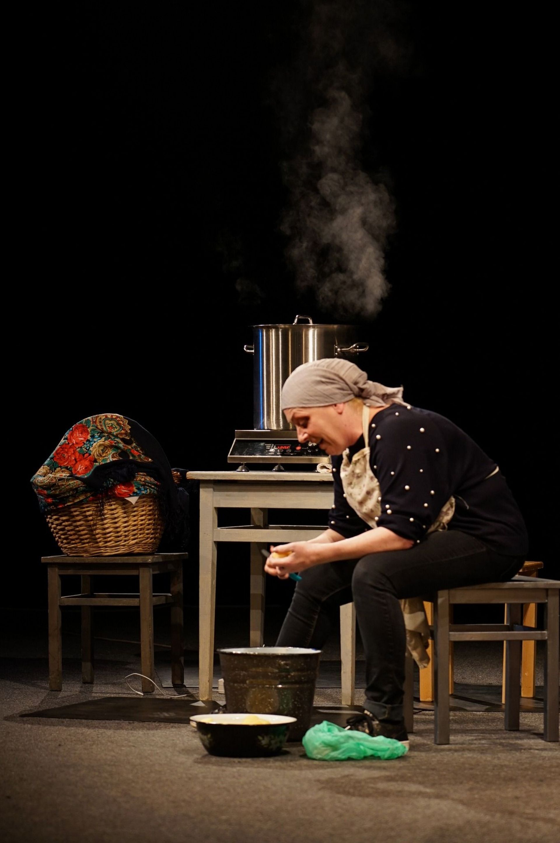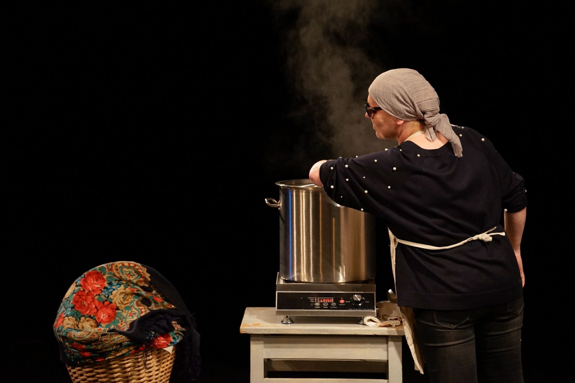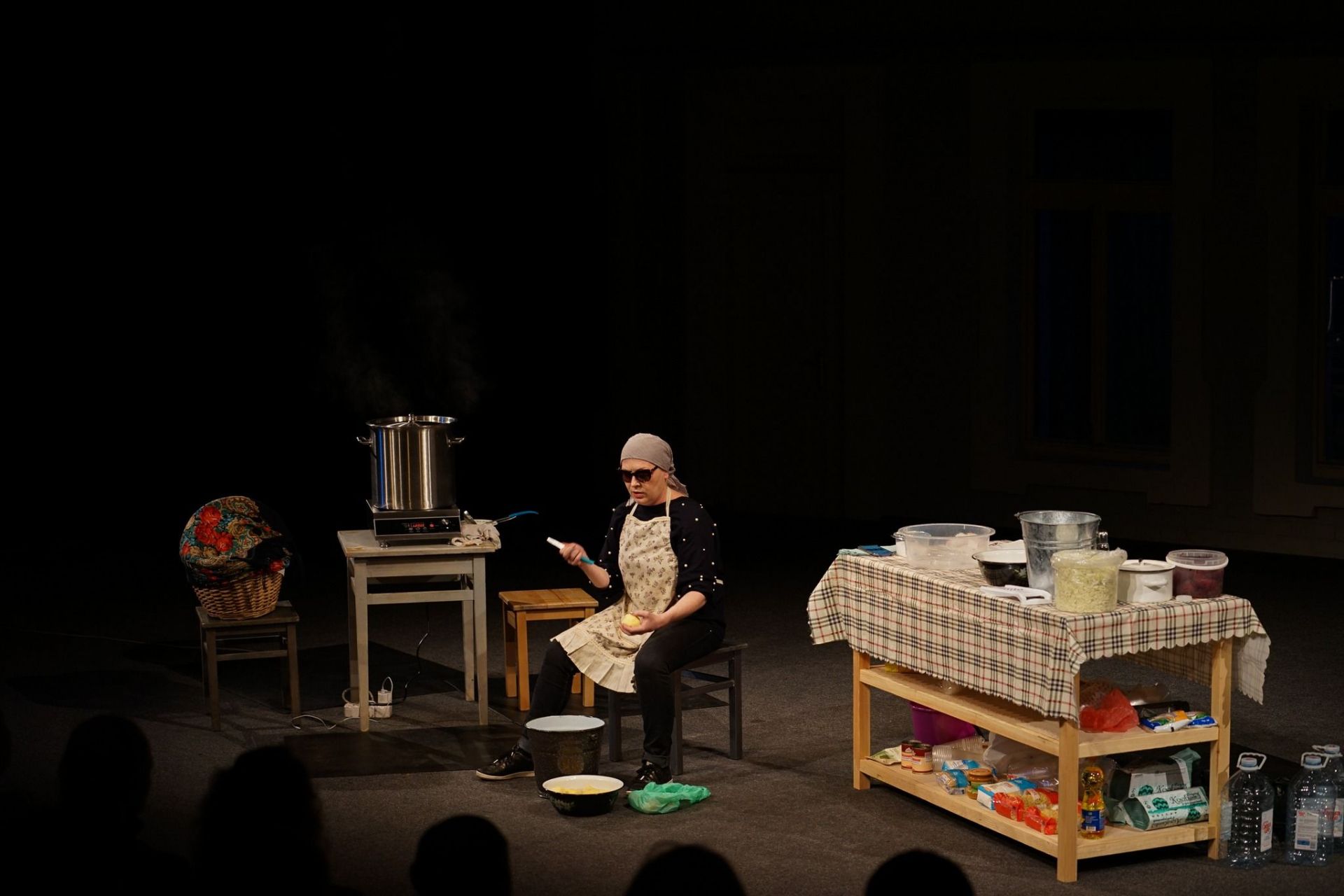 Окрема родзинка вистави у тому, що головна героїня, розповідаючи свою історію, прямо на сцені варить борщ. Вона чистить картоплю, тре моркву, шинкує капусту, і в цей час розповідає про жахіття, які пережила в окупації.