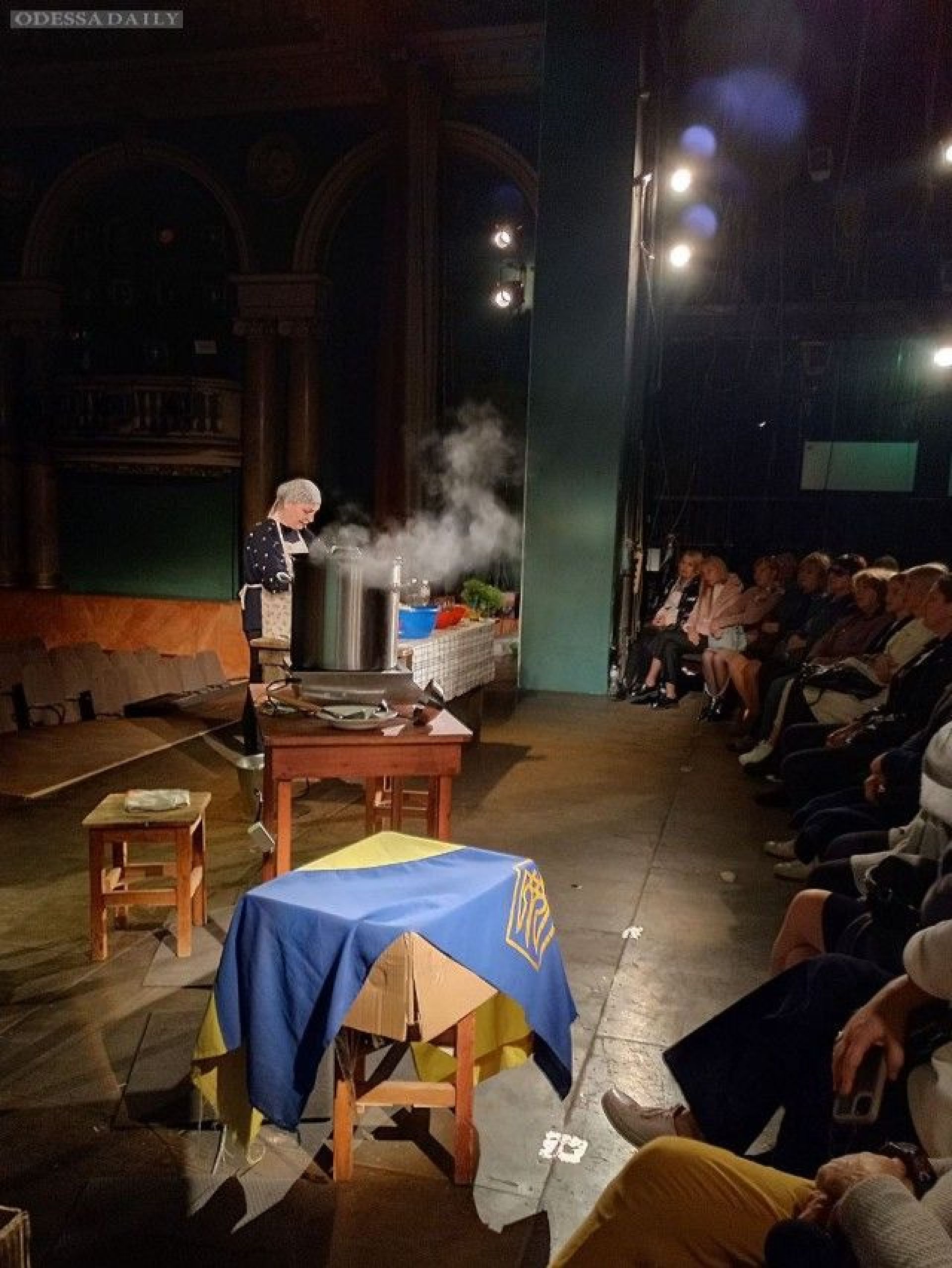 Цим борщем акторка пригостить всіх глядачів у фіналі вистави. Що досить символічно, адже вона ділитиметься ледь не останніми благами з надією, що кращі часи попереду і світло переможе темряву.