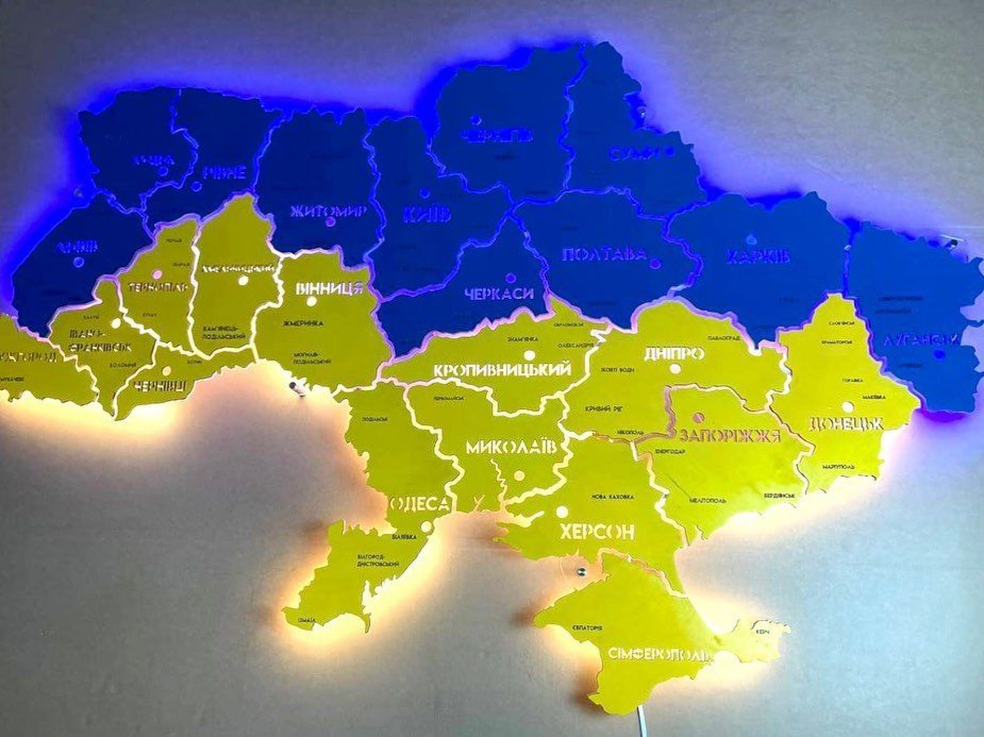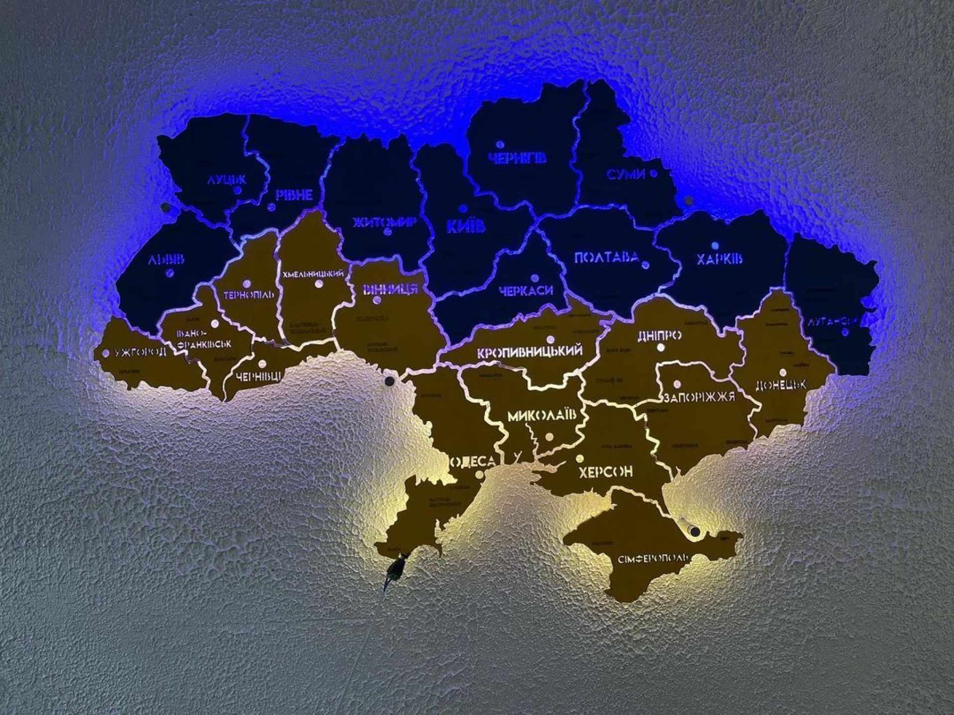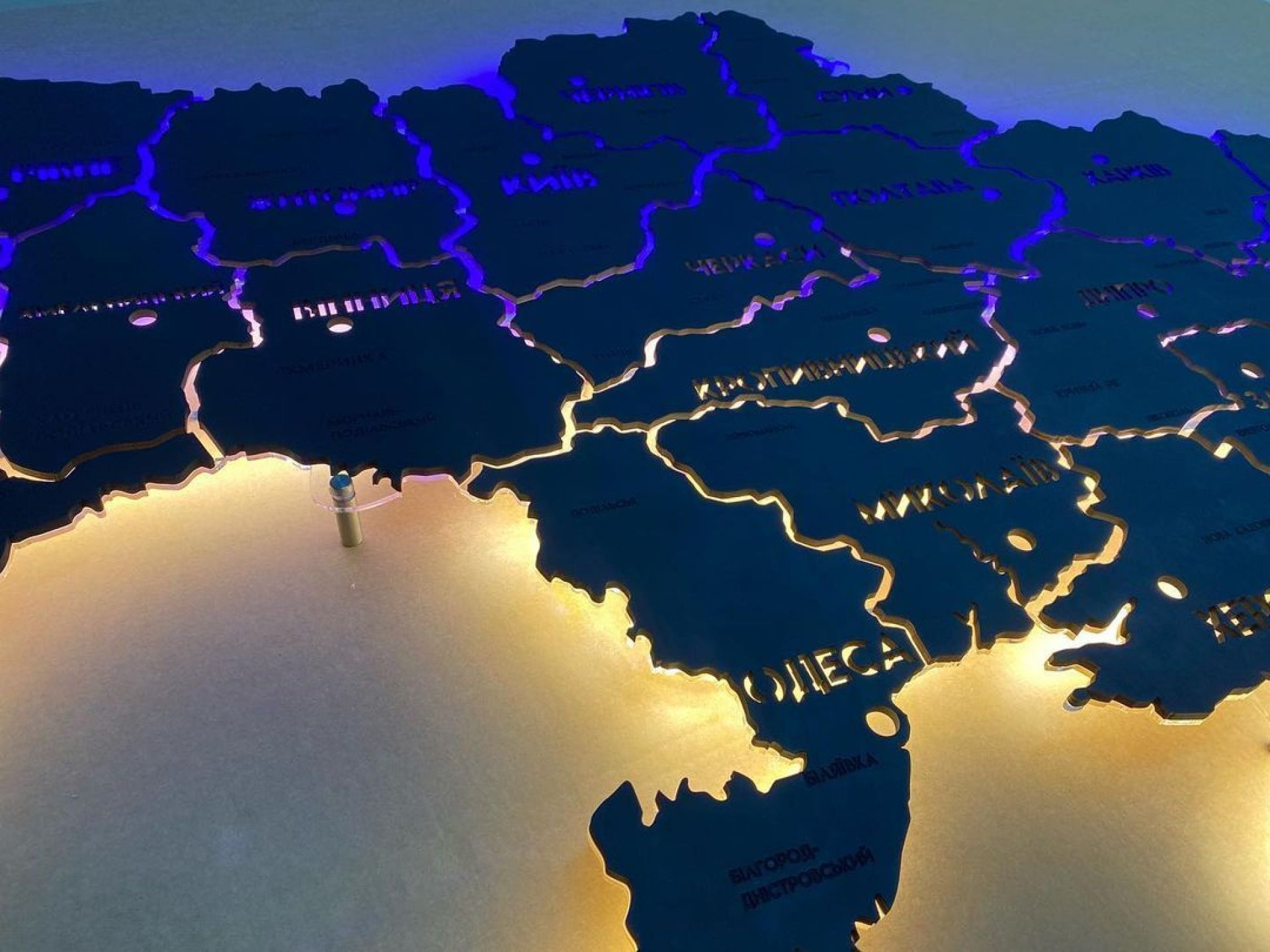 «Стильна карта України з підсвіткою. Цей виріб стане доповненням до інтер‘єру будинку або квартири, офісу чи кав’ярні, будь-якого місця, де ви проводите час»