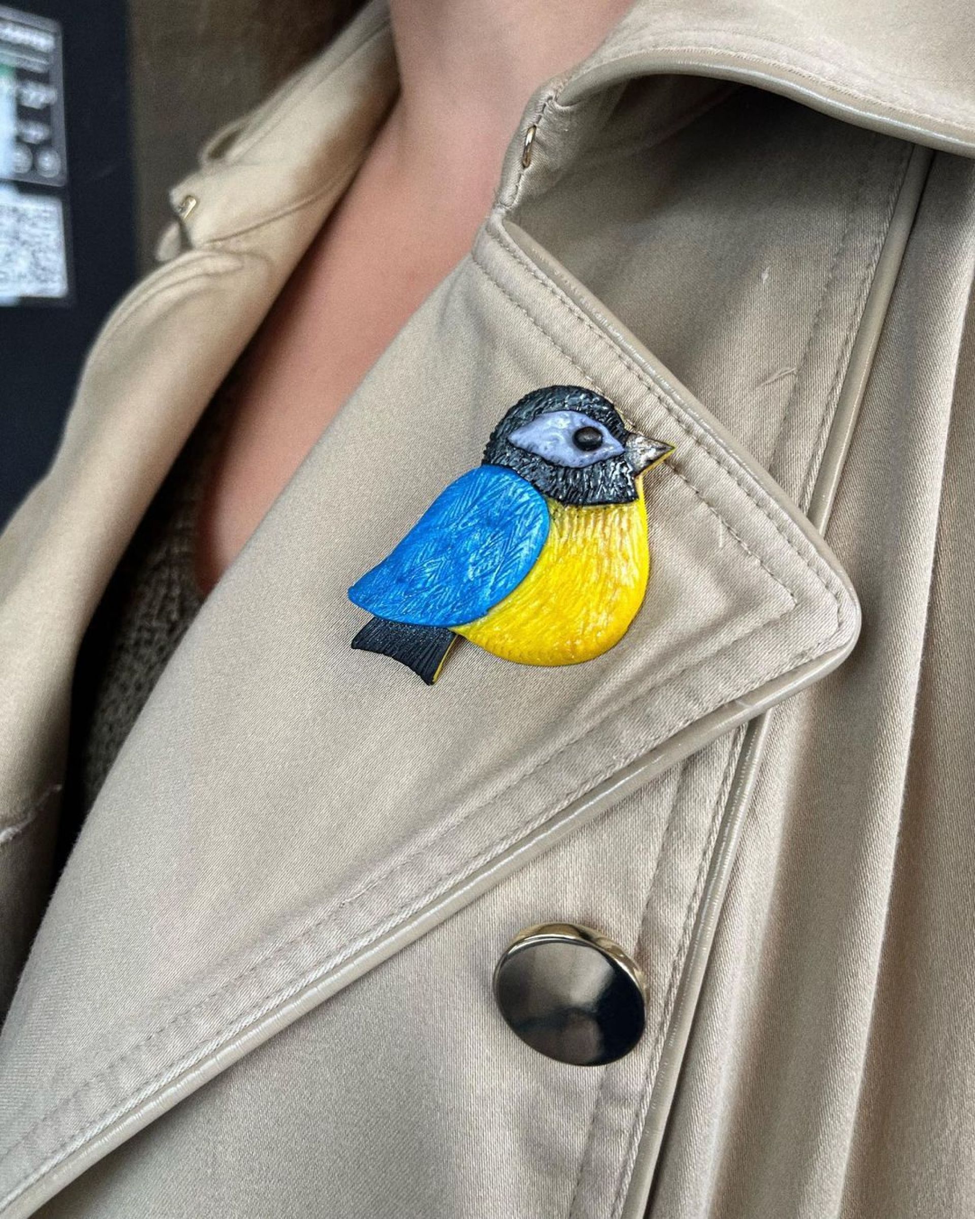 - Брошка «Пташка» у патріотичних кольорах — 285 грн