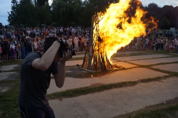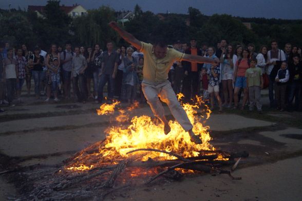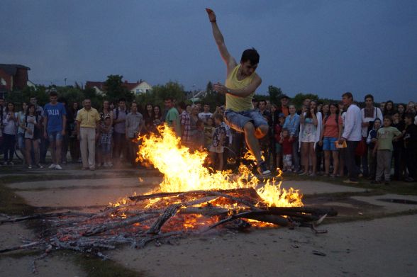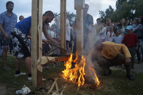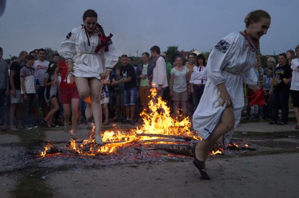 Цьогоріч живий вогонь вінничанам вдалось запалити з другої спроби. Навкруг палаючої ватри водили хоровод, а коли та майже перегоріла – стрибали через полум’я.