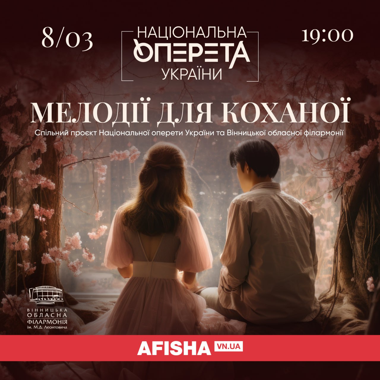 Концерт «Мелодії для коханої» стане другою прем’єрою, яку менш ніж за місяць презентує Національна оперета України та Вінницька філармонія. Перший концерт «Пристрасть та кохання» з приголомшливим успіхом пройшов у День всіх закоханих, 14 лютого.