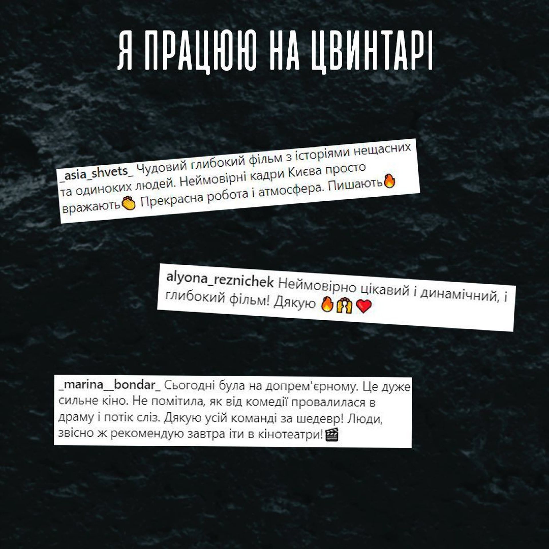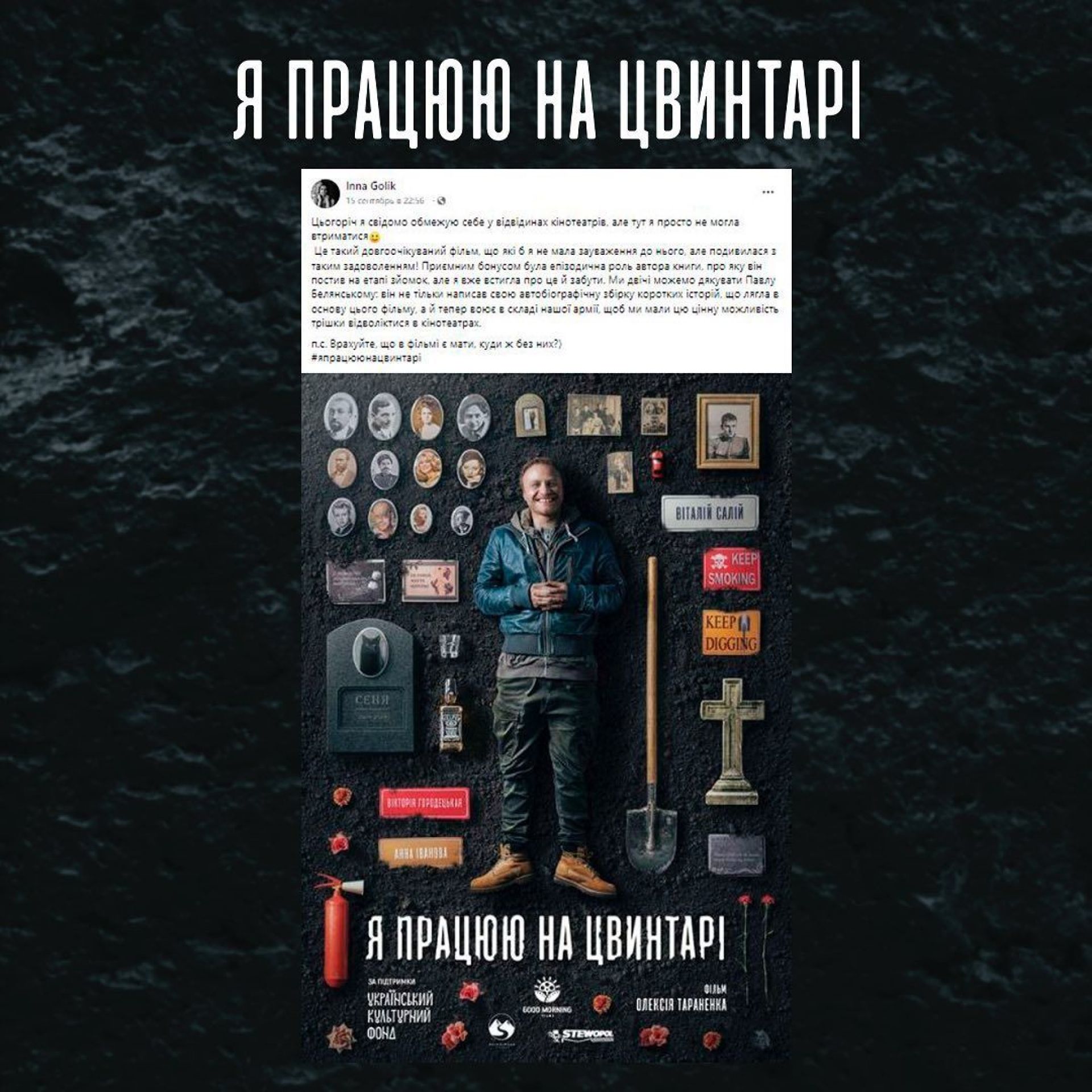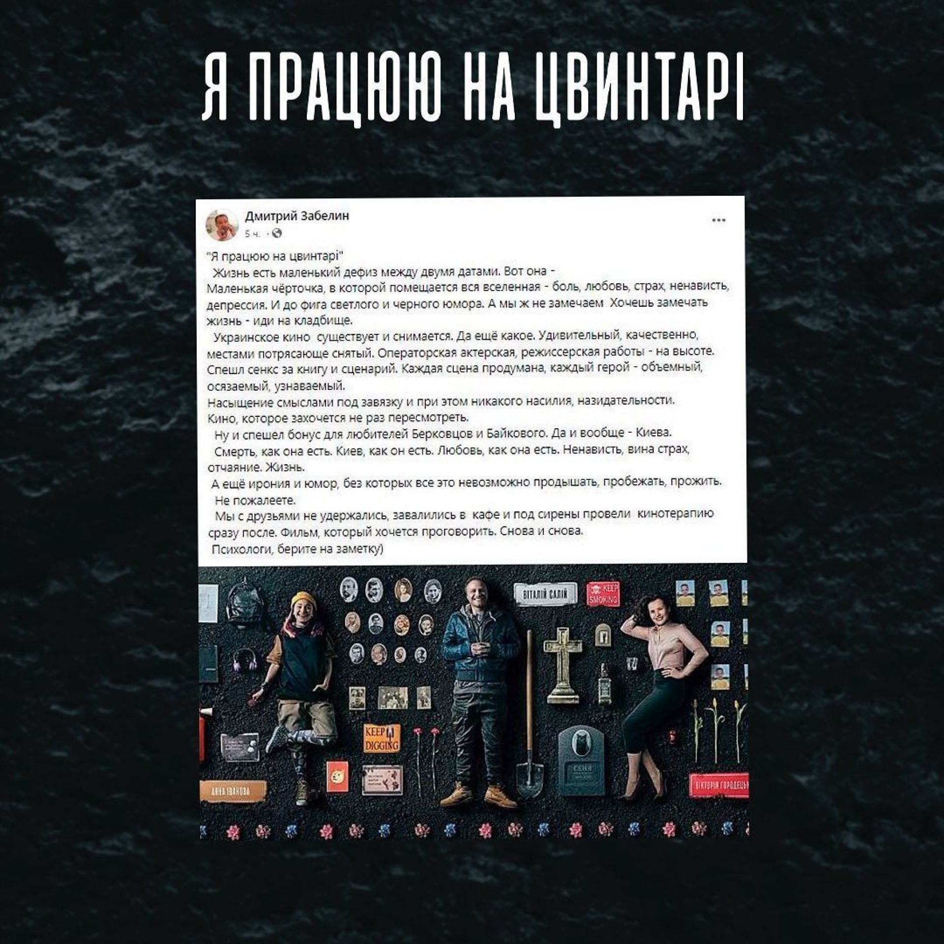 «Я працюю на цвинтарі» — третій фільм українського виробництва, який від початку повномасштабного вторгнення рф вийшов на великі екрани в Україні.
