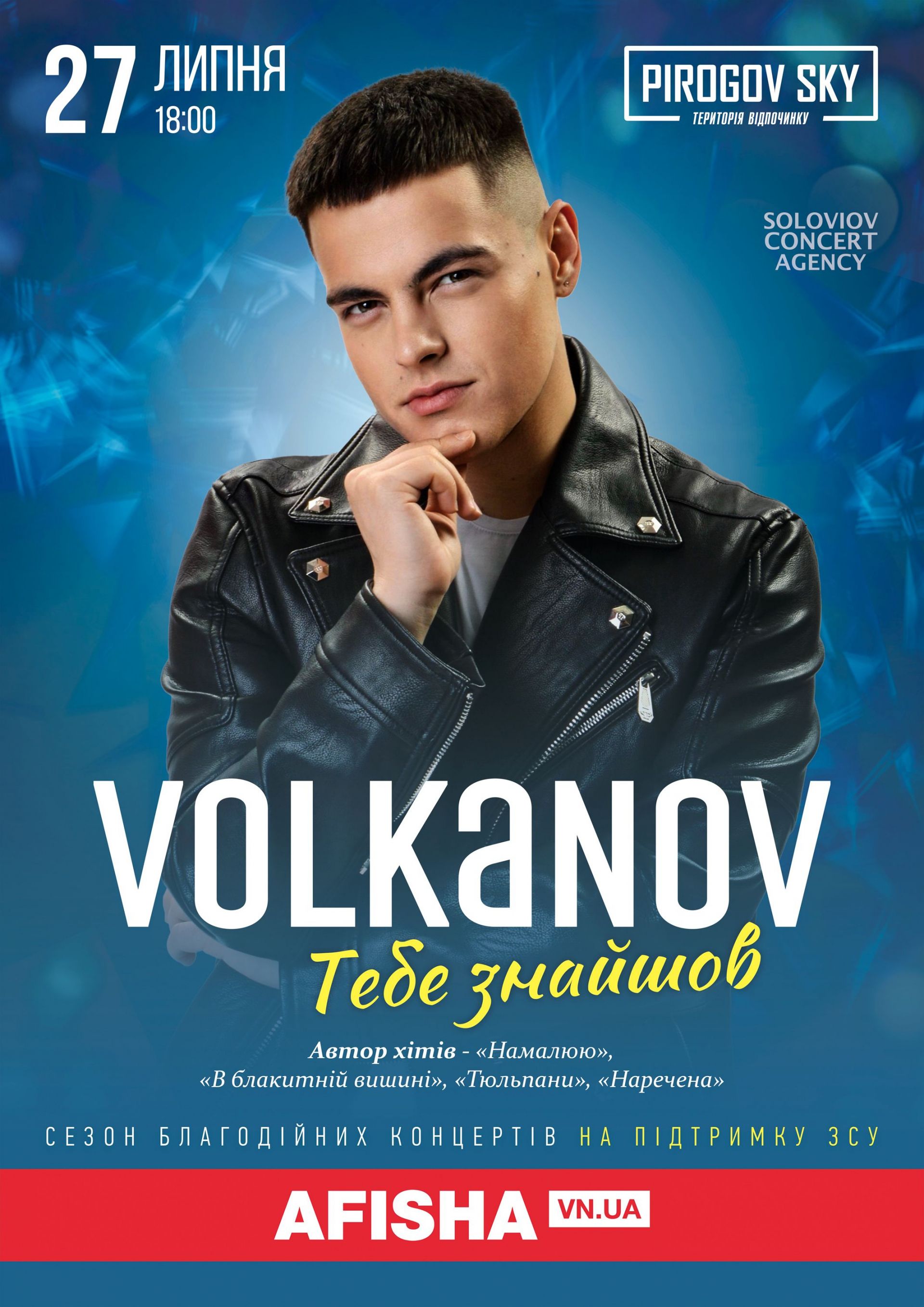 Всі свої найкращі хіти «Тебе знайшов», «В рожевих снах», «Наречена», «Намалюю», «Обіймами» та багато-багато інших Volkanov співатиме для вінничан на атмосферному концерті просто неба 27 липня у PIROGOV SKY.