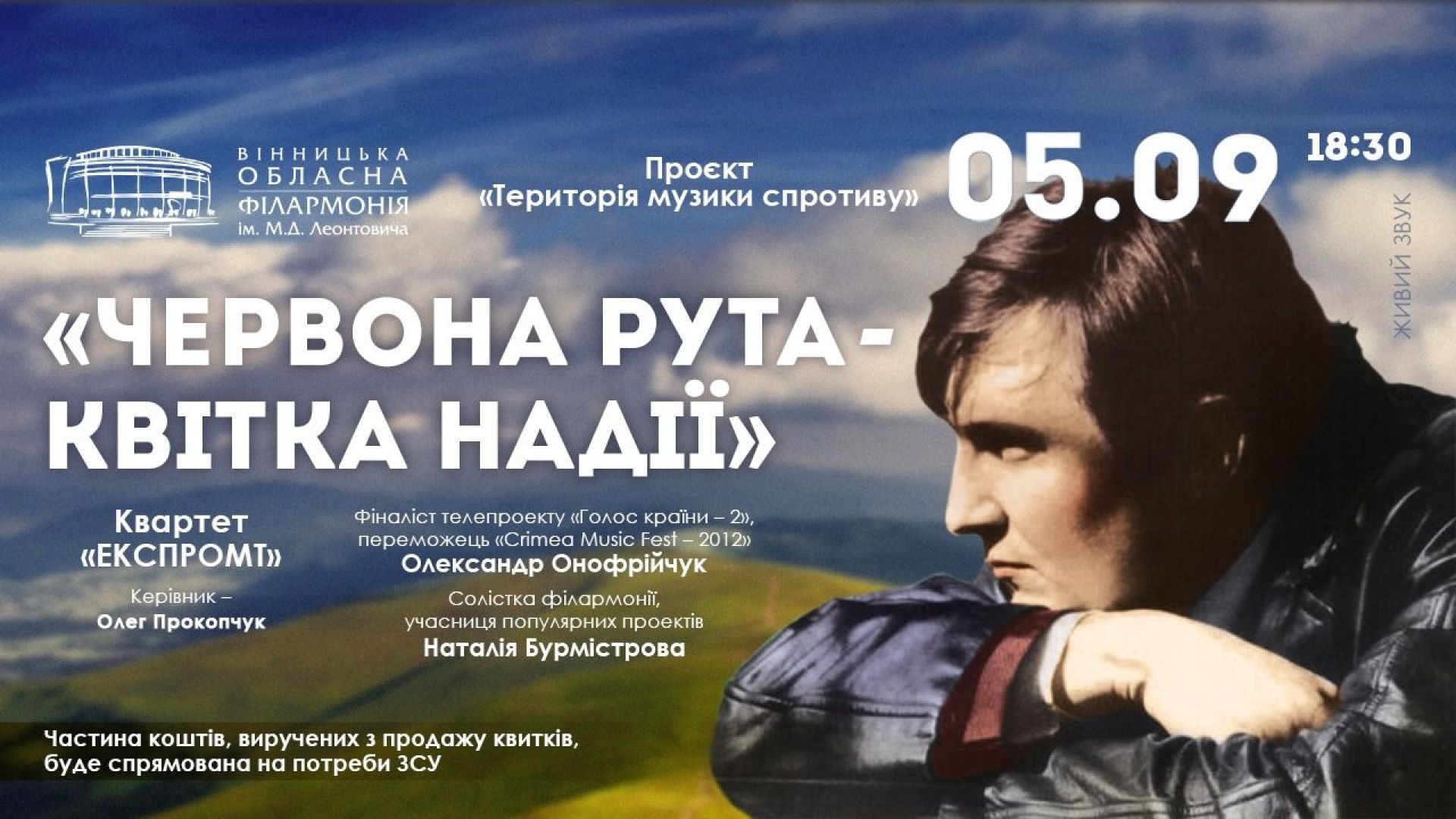 На концерті 5 вересня у Вінниці пісні генія української музики виконає квартет «Експромт» (музичний керівник — Олег Прокопчук) та неперевершені солісти: фіналіст телепроекту «Голос країни-2», переможець «Crimea Music Fest-2012» Олександр Онофрійчук та солістка філармонії, учасниця популярних проєктів Наталія Бурмістрова.