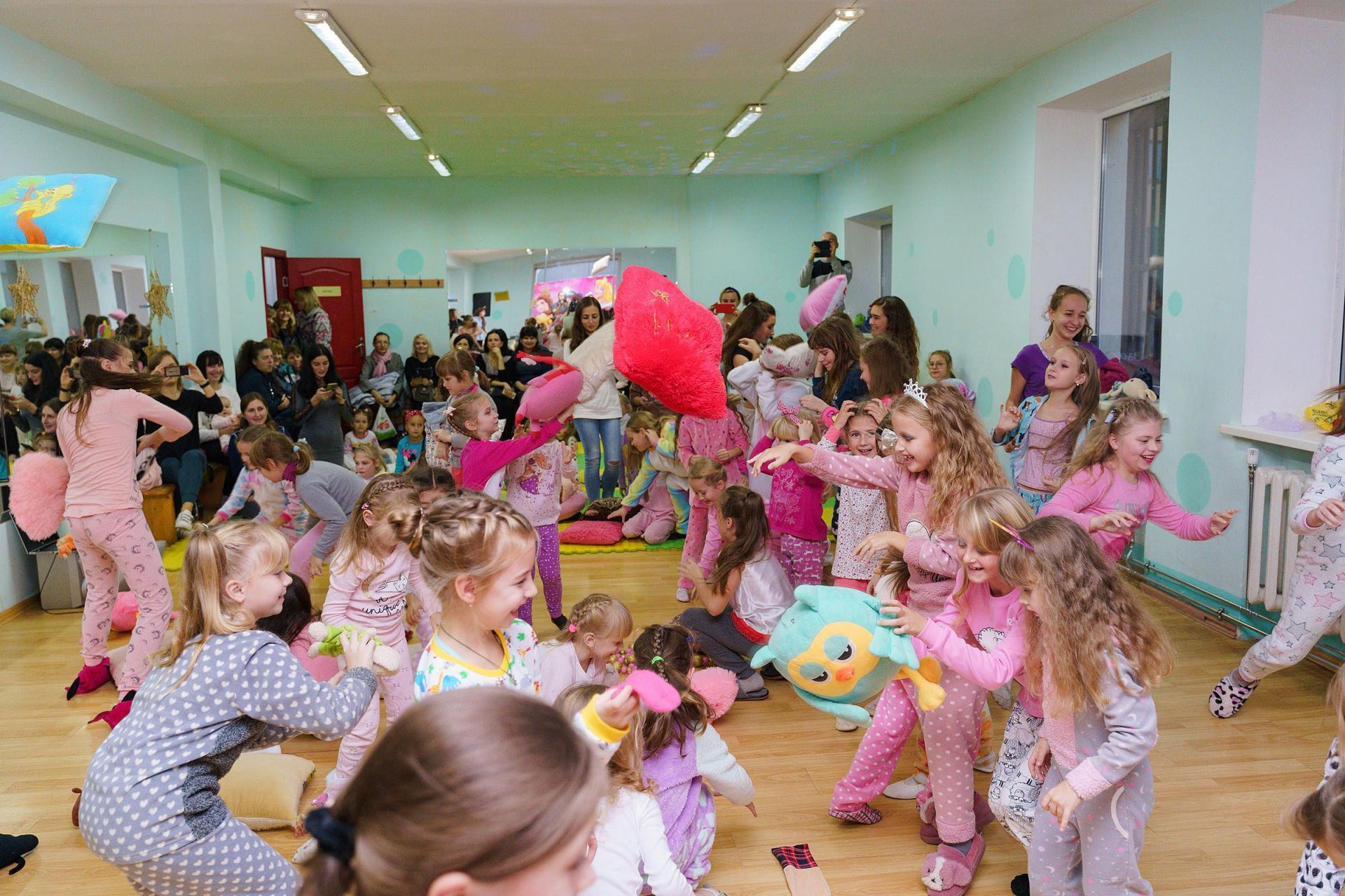 Програма заходу включала в себе битву подушками, візаж, танці дівчаток та їхніх мам, конкурси, candy bar (так зараз називають солодкий стіл), перегляд улюблених мультиків і фотосесію. Кожен з учасників міг добровільно долучитися до збору необхідних речей для наших чотирилапих друзів.