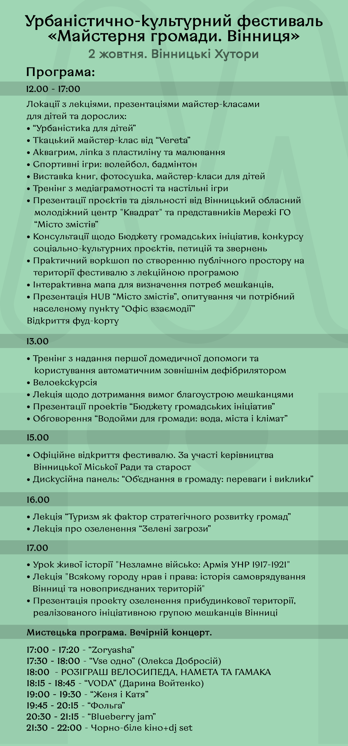 - У суботу, 2 жовтня, вперше у Вінниці відбудеться урбаністично-культурний фестиваль «Майстерня громади».