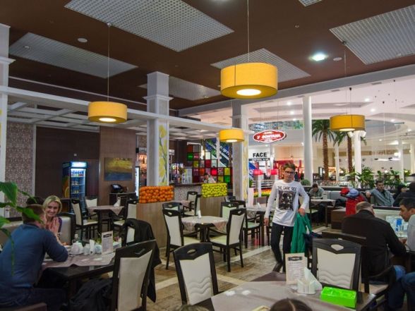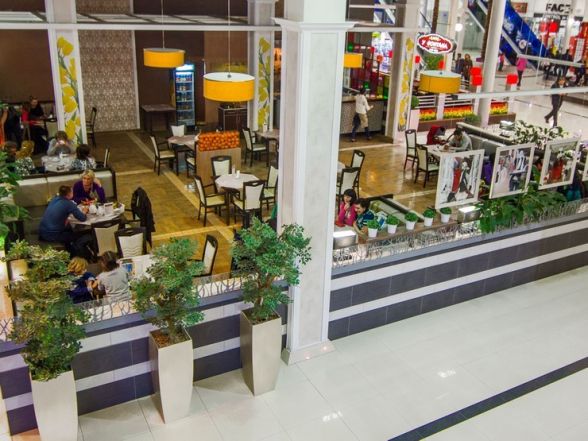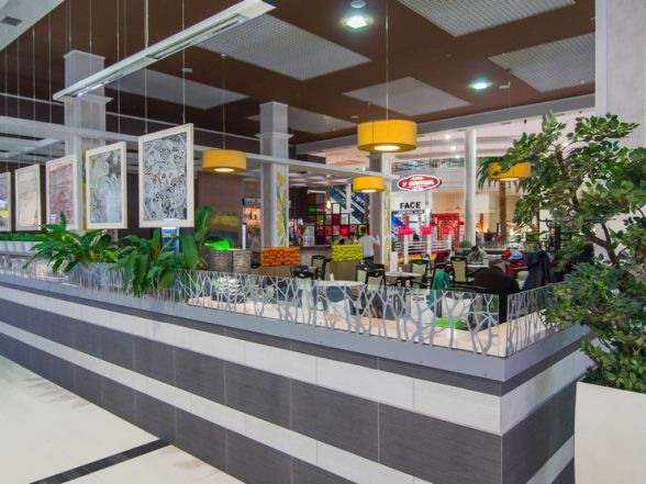 Кафе розташовано на першому поверсі ТРЦ Мегамолл, біля знаменитого фонтану.