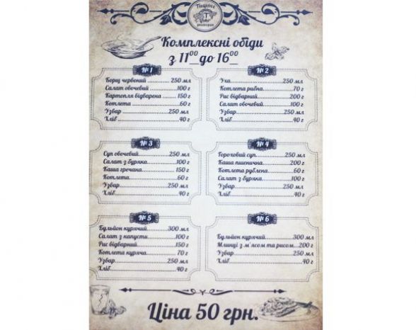 Меню комплексних сніданків і обідів розраховане на різні смаки, тому Вам не доведеться харчуватися незвичною їжею, яка не входить у звичайний раціон.