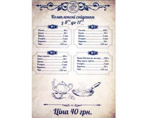 Якщо Ви бажаєте почати свій вдалий день із гарного сніданку, скуштувати різні солодощі, а також смачно поїсти, "Цукерня Львівська" має пропозиції на всі смаки та забаганки.