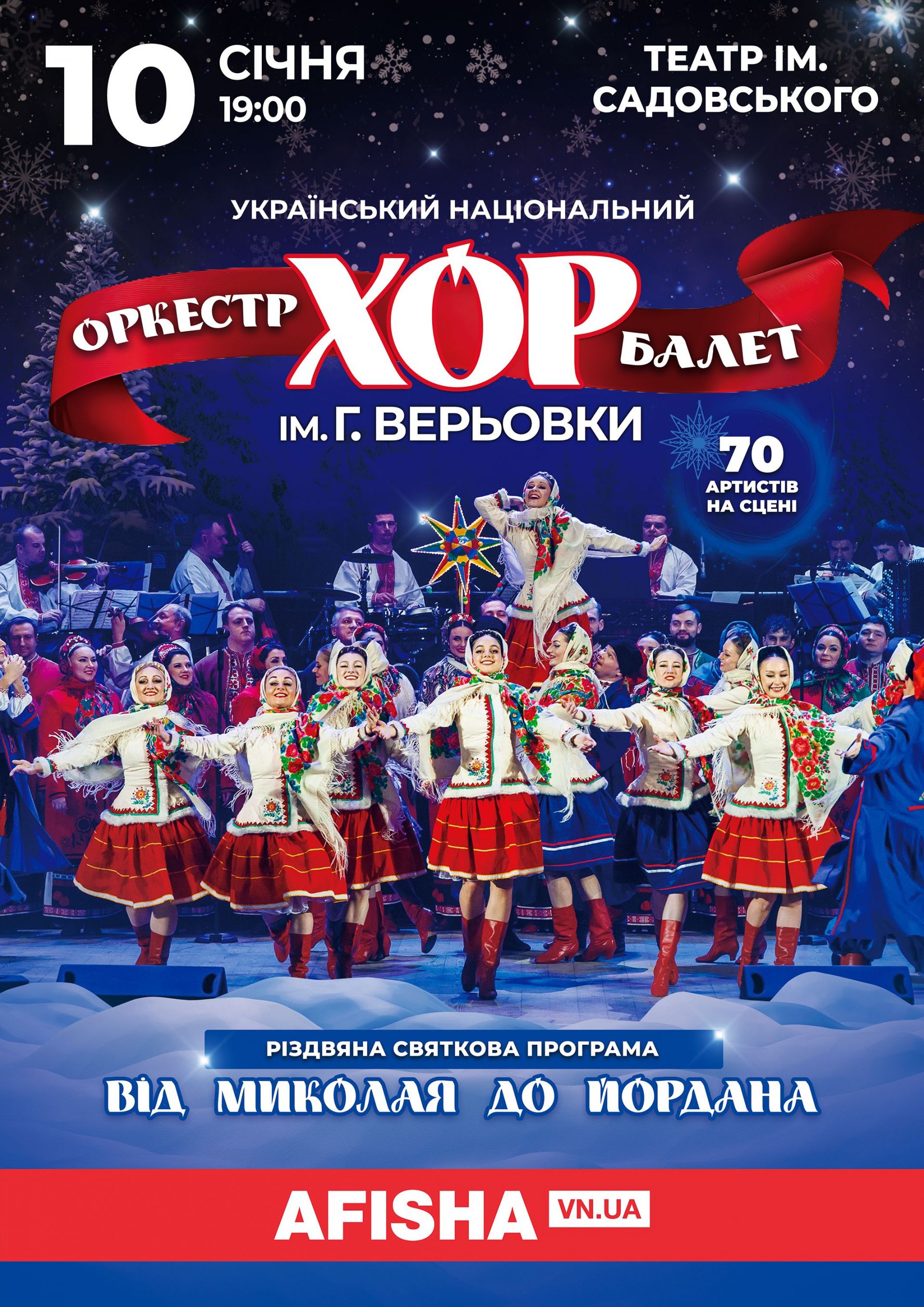 Легендарний Хор імені Григорія Верьовки 10 січня о 19.00 у театрі ім. Садовського вінничани зустрінуть абсолютним аншлагом. На грандіозну святкову програму «Від Миколая до Йордана» вже не залишилось жодного квитка.