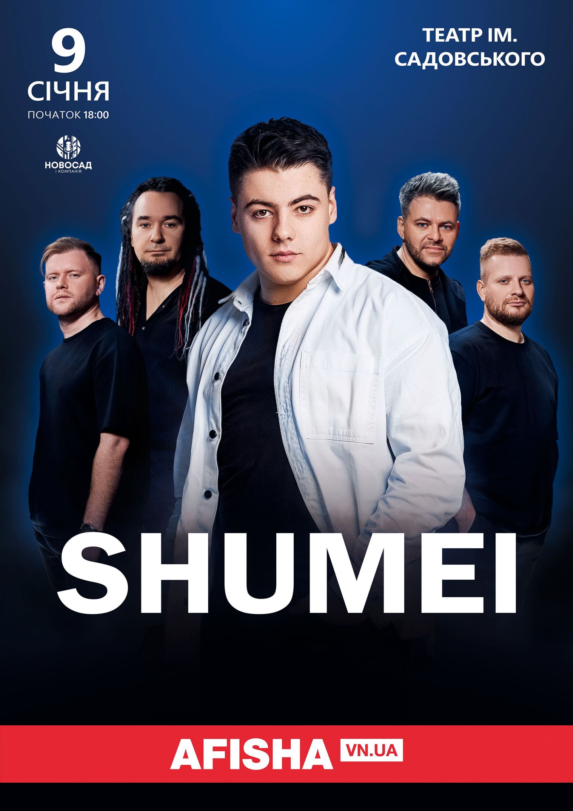 — SHUMEI — яскравий представник новітньої української музики, що поєднує молодість, харизму і талант, — запрошують організатори — компанія «ВІННИЦЯКОНЦЕРТ». — На концерті 9 січня всіх скорить вибухова суміш потужного вокалу, безмежної енергії та неповторних вражень.