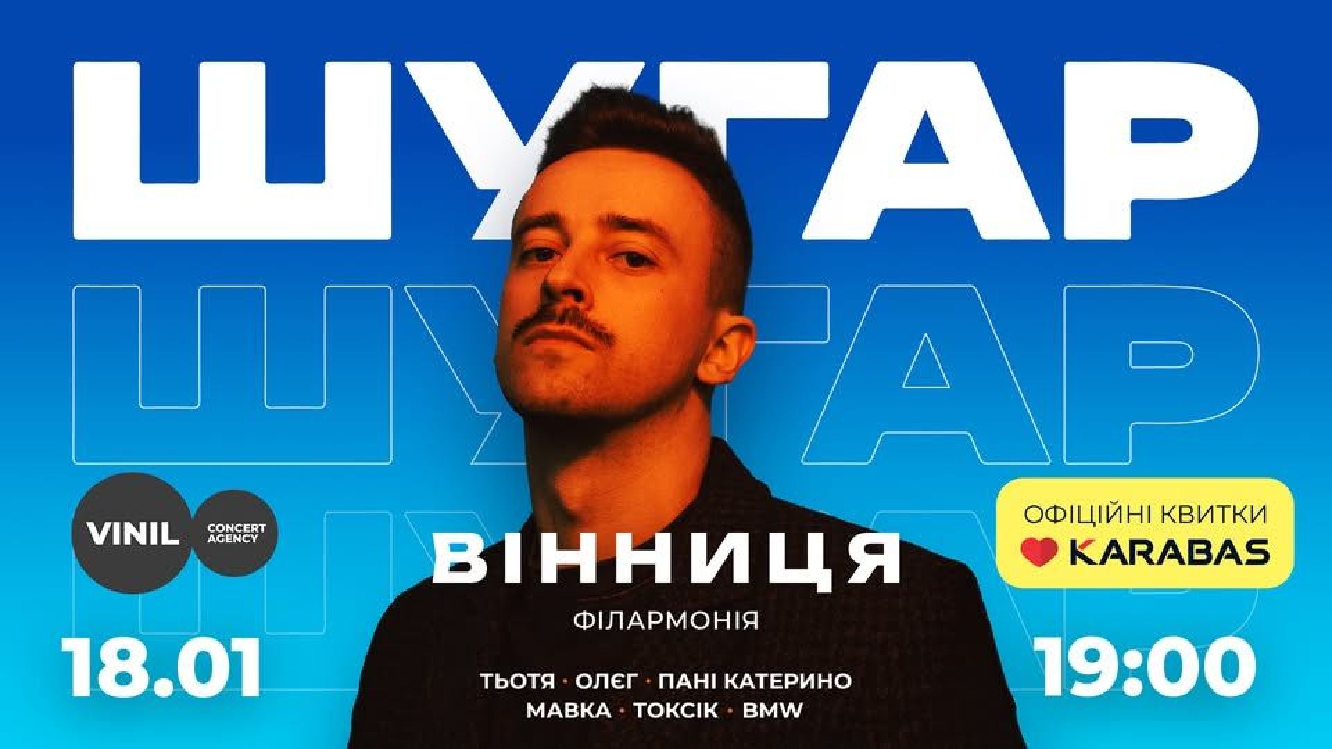 Справжній вибух емоцій обіцяє вінничанам 18 січня о 19.00 у Вінницькій обласній філармонії популярний сучасний виконавець Шугар.
