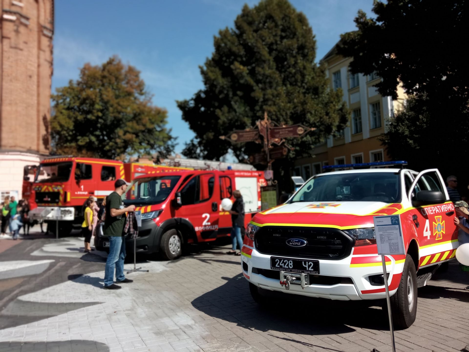 - На Європейські площі під час святкування Дня міста працівники Центру історії Вінниці спільно з Головним управлінням ДСНС України у Вінницькій області влаштували виставку пожежної техніки.